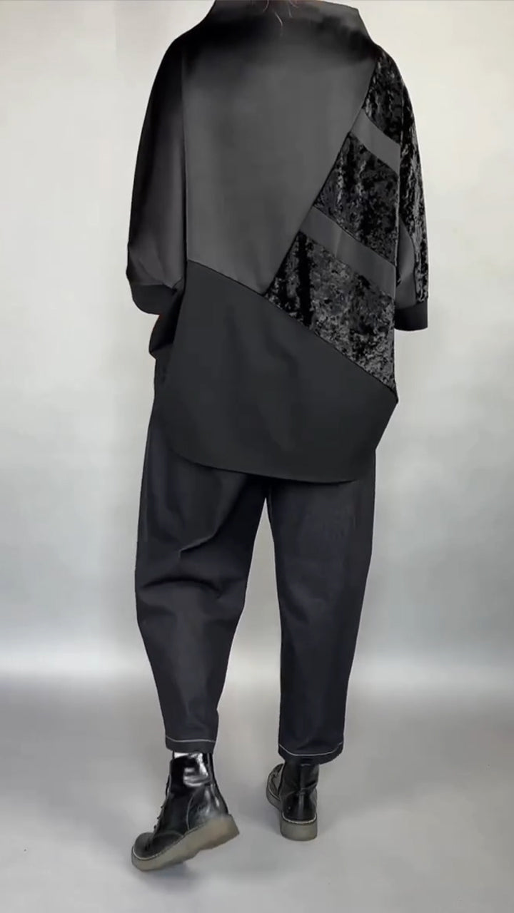 Women Round Neck Patchwork Top + Pants Casual Suit