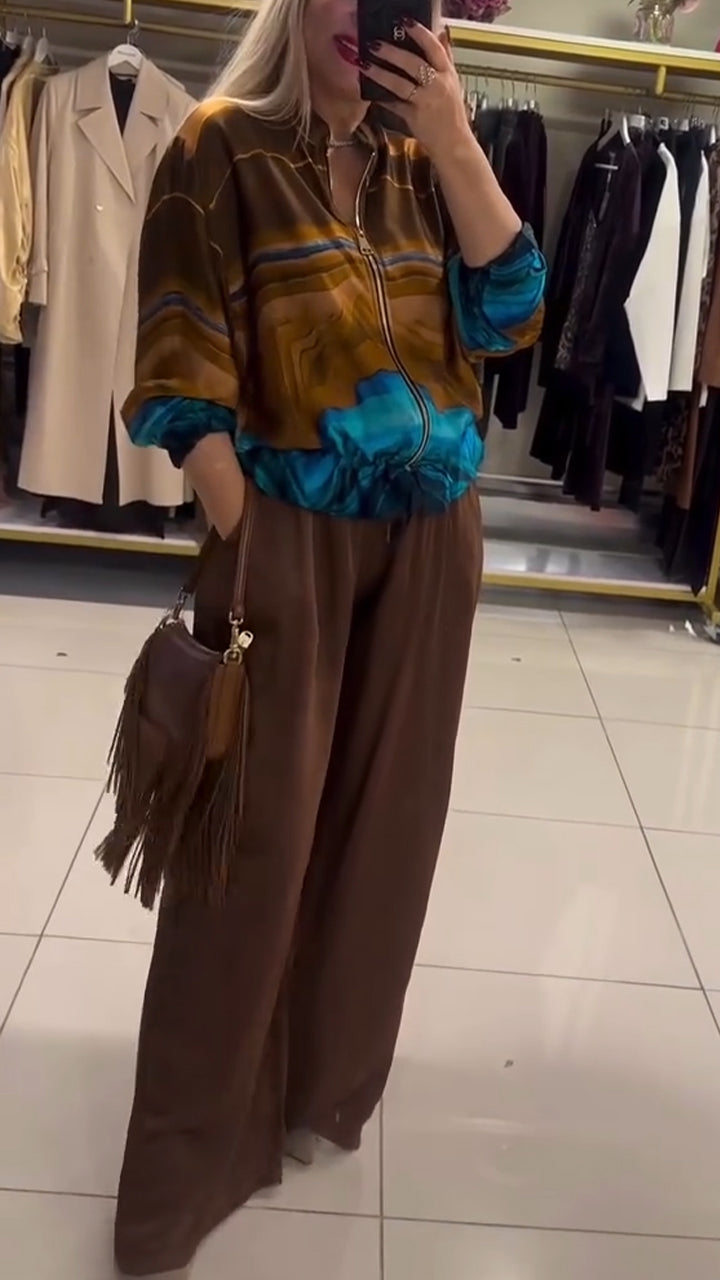 Ladies' Round Neck Printed Top + Pants Casual Set