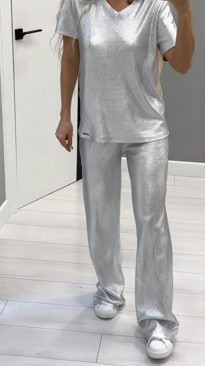 Ladies' Round Neck Printed Top + Pants Casual Set