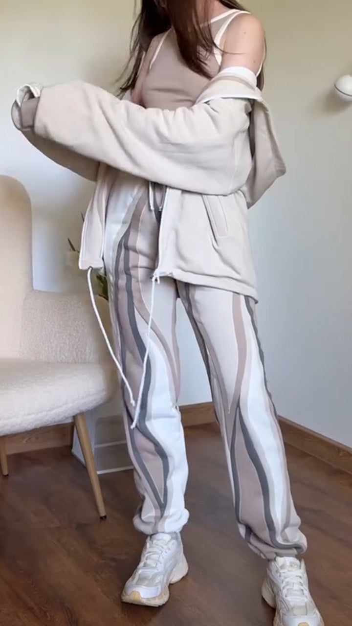 Women Wavy Patterned Jacket + Pants Casual Suit