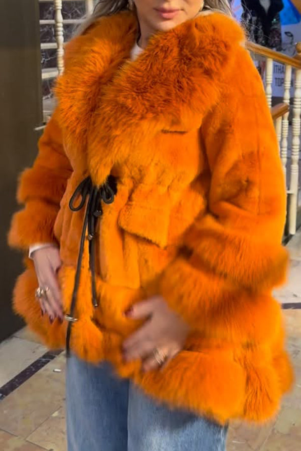 Women's Lapel Button Knitted Sleeve Casual Coat with Two Side Pockets