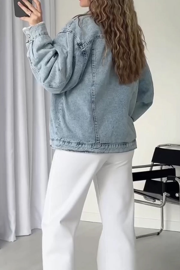 Women's Lapel Button Knitted Sleeve Casual Coat with Two Side Pockets