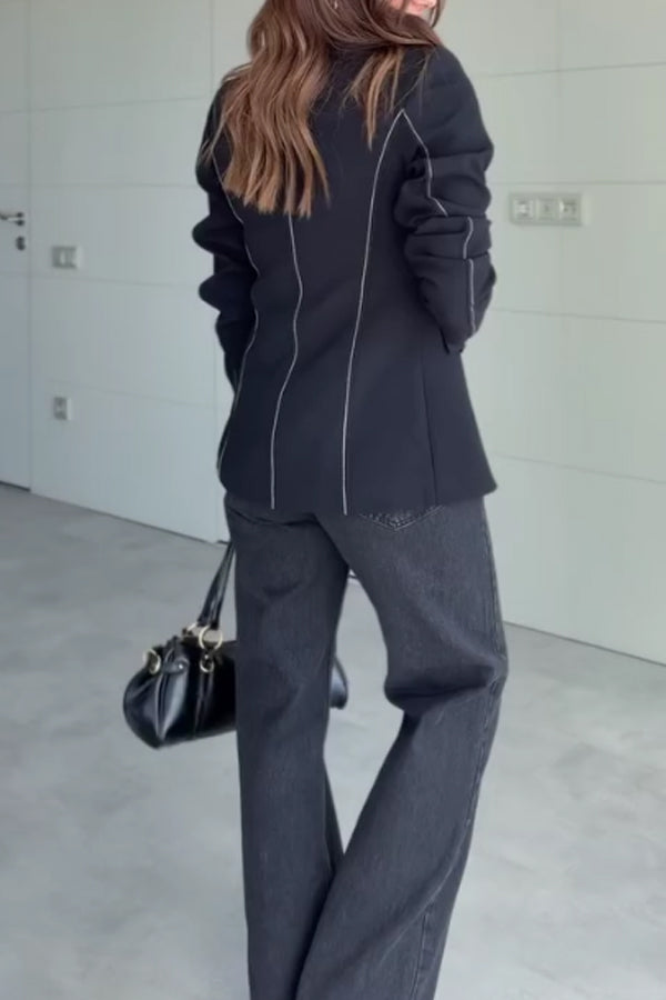 Women's Lapel Button Knitted Sleeve Casual Coat with Two Side Pockets