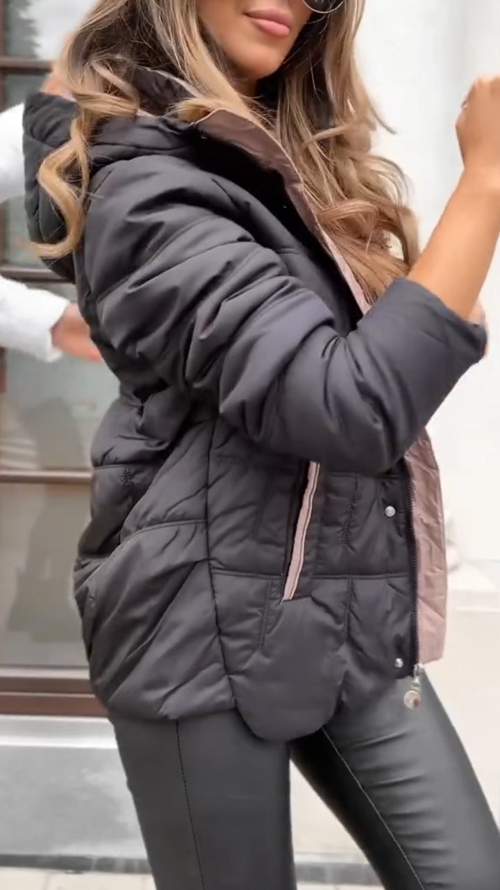 Women's Lapel Button Knitted Sleeve Casual Coat with Two Side Pockets