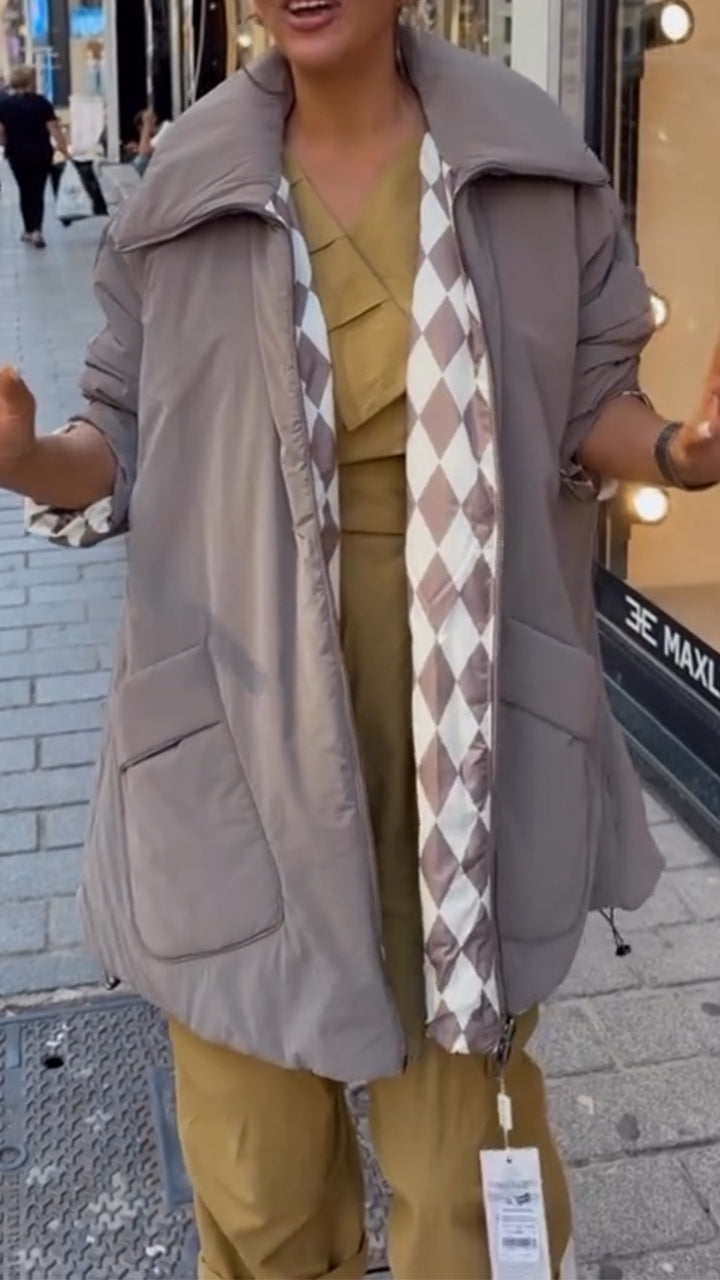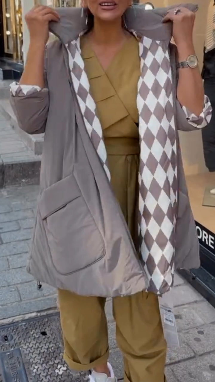 Women Lapel Internal Grid Pattern Style Casual Cotton Jacket