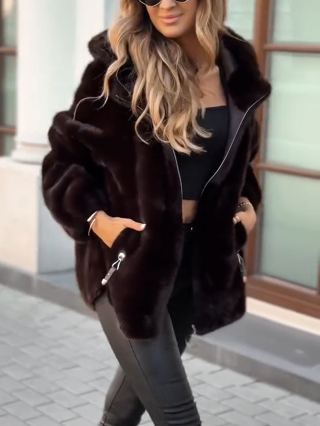 Womens Lapel Plush Zipper Casual Coat