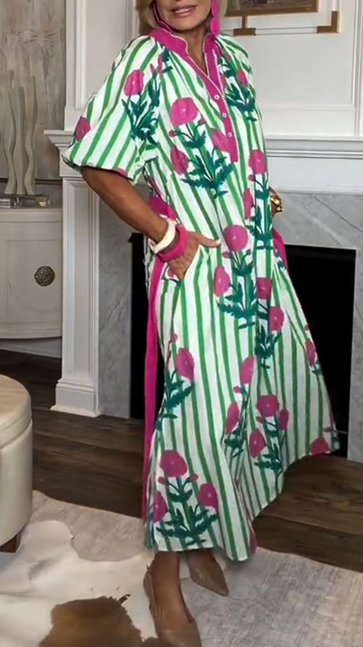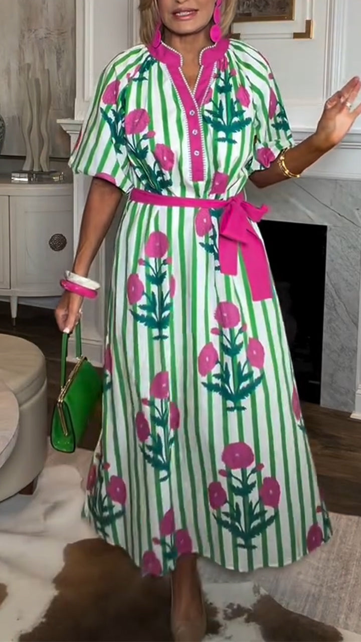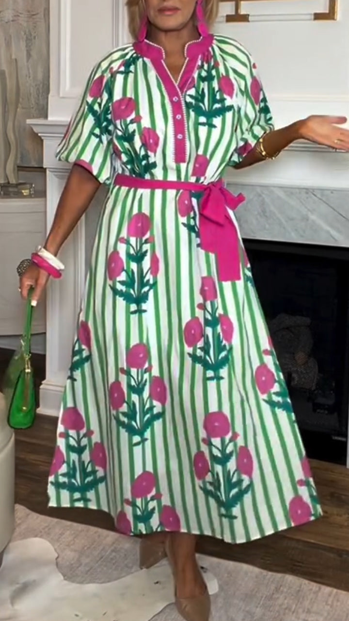 Women Elegant Casual Dress with Stand-up Collar and Floral Print