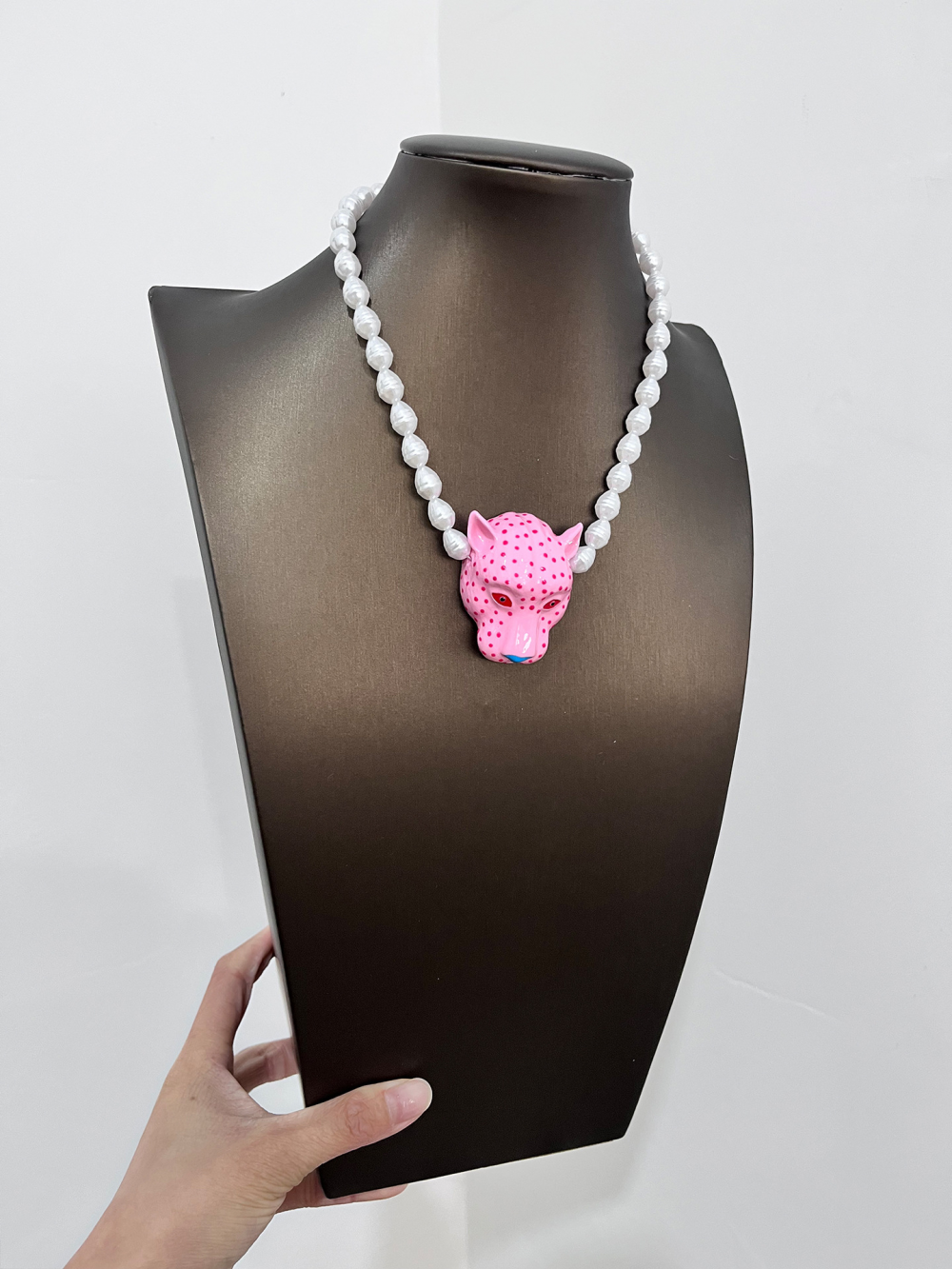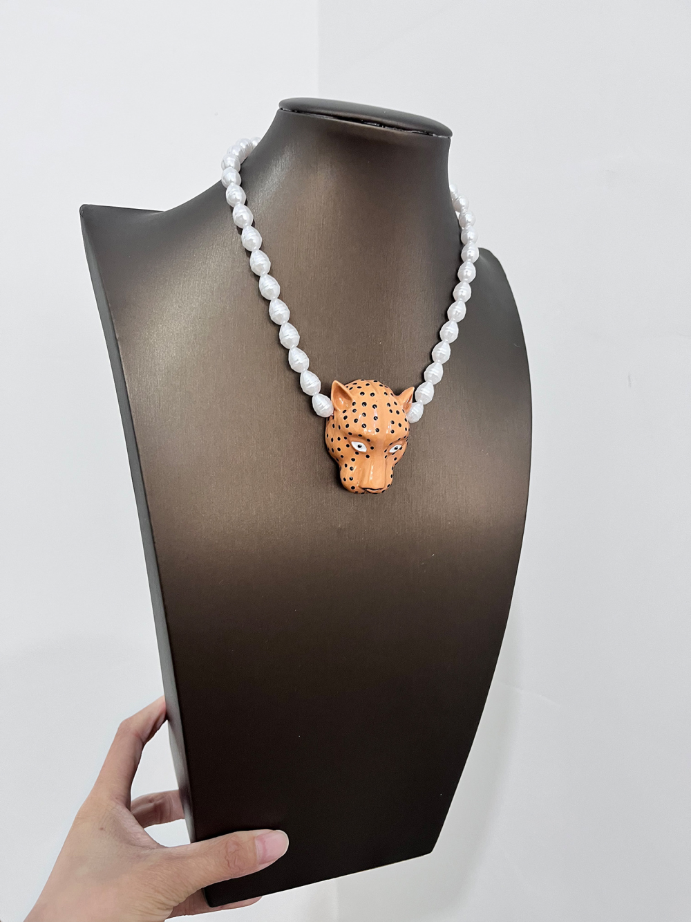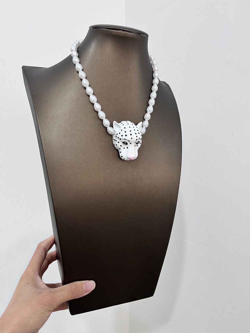 Leopard Head Pendant Necklace Pearl Unique Neck Accessory for Women