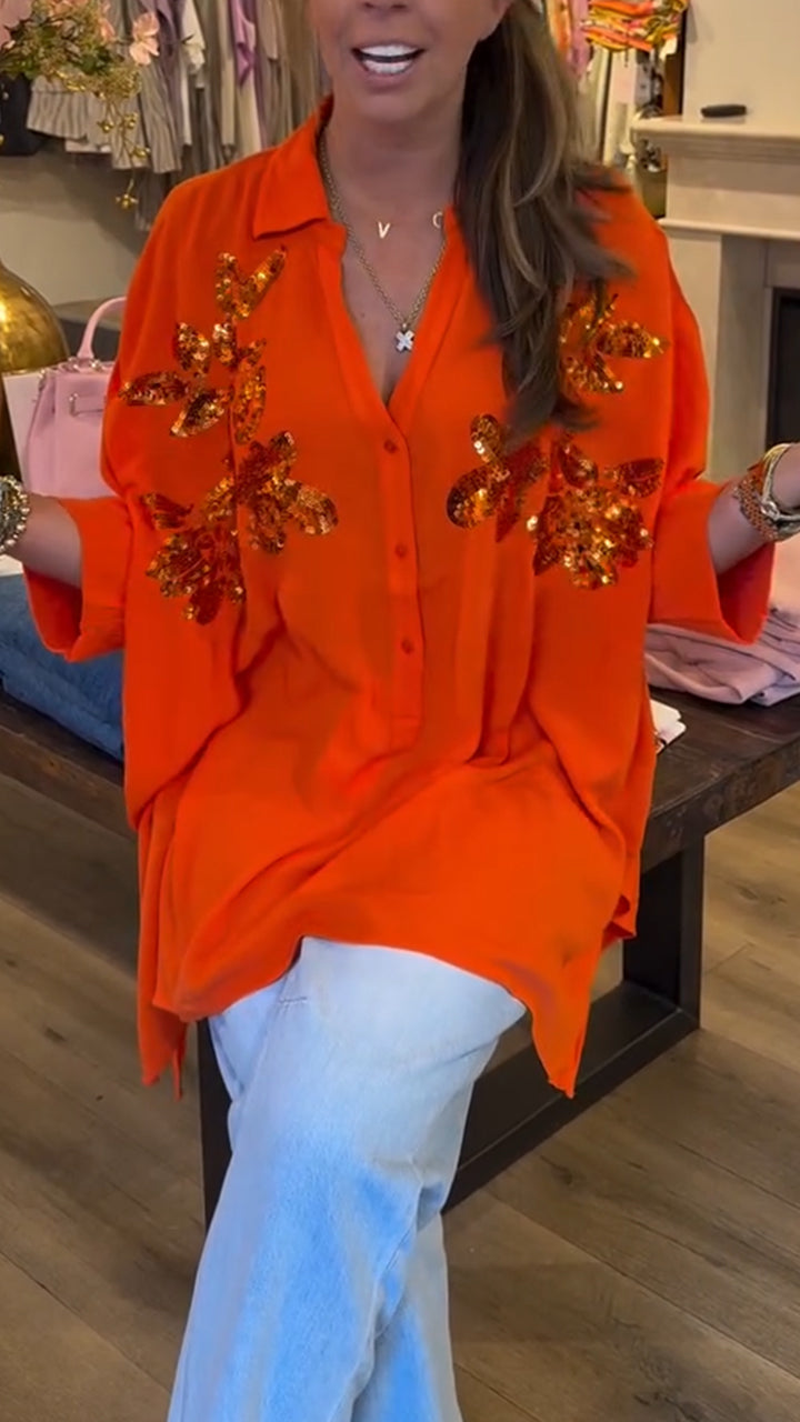 Women Laple Collar Denim Patchwork Sweater Casual Top