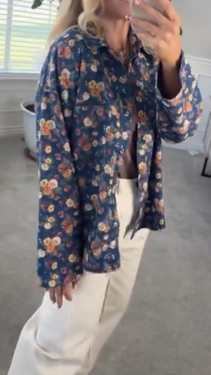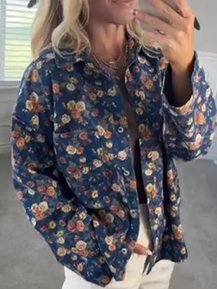 Women Collar Printed Casual Jacket