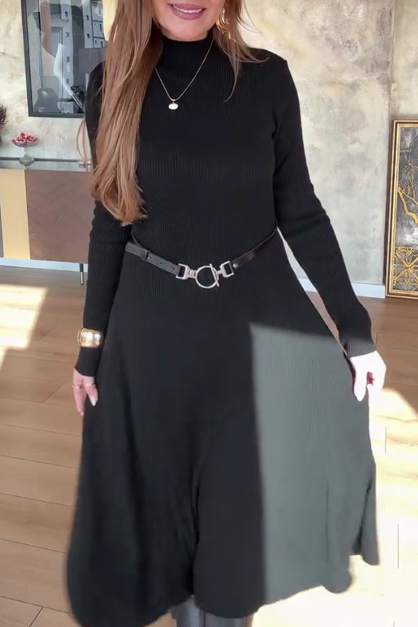 Women Elegant Half-Turtleneck Stretch Slim-Fit Knit A-Line Dress