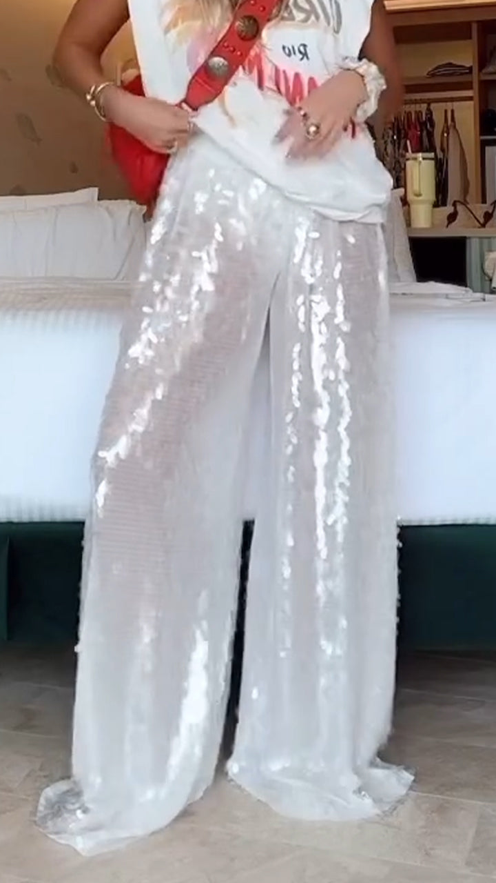Women's Spring Casual Solid Color Satin Two-Piece Suit