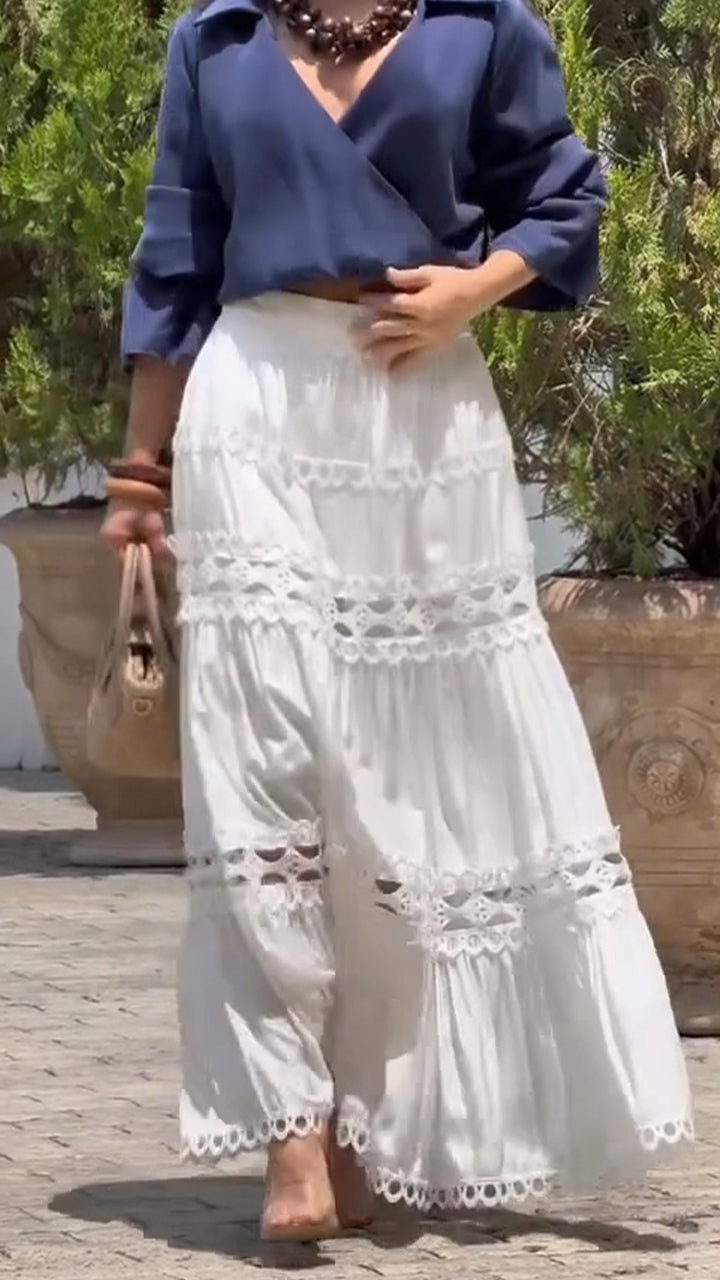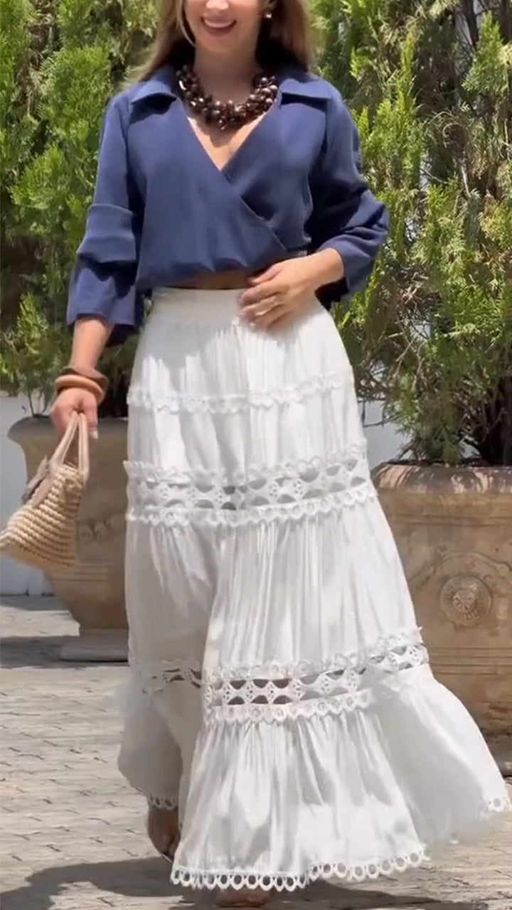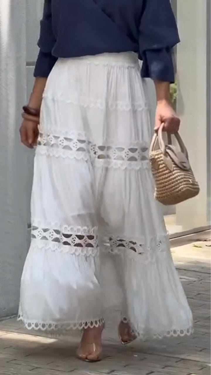 Women Spliced Hollow Solid Color Elegant Casual Half Skirt
