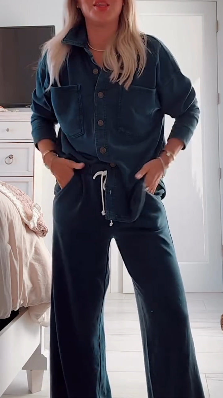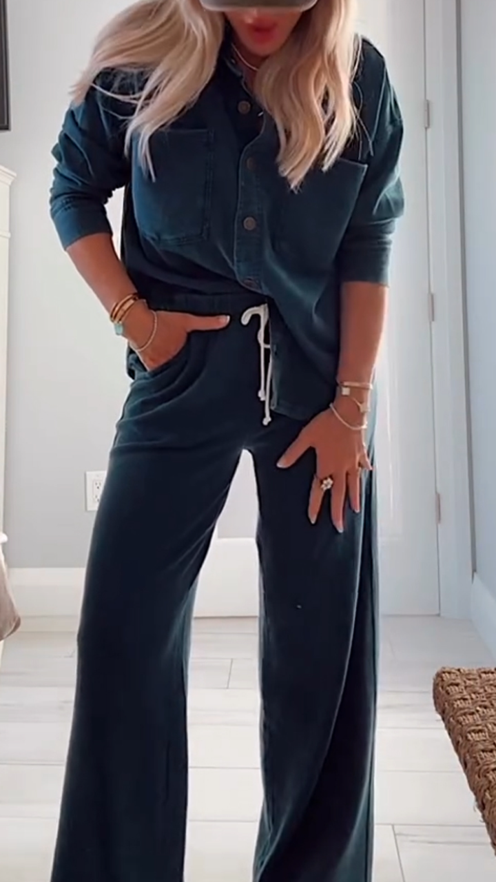 Womens Lapel Shirt and Pants Casual Set