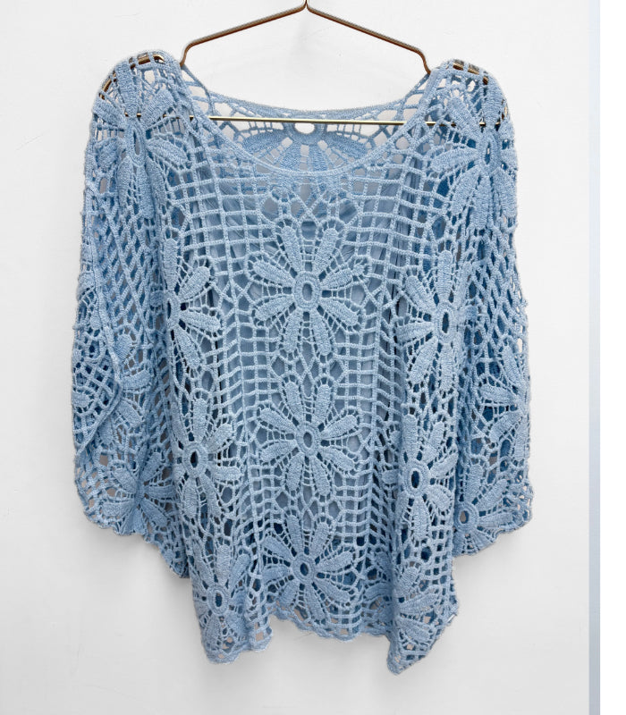 Women Laple Collar Denim Patchwork Sweater Casual Top
