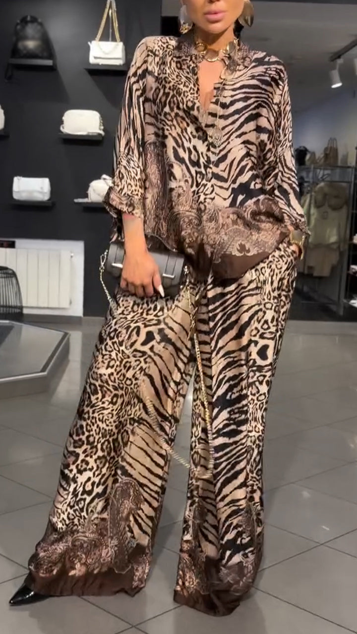 Womens V-neck Printed Casual Suit