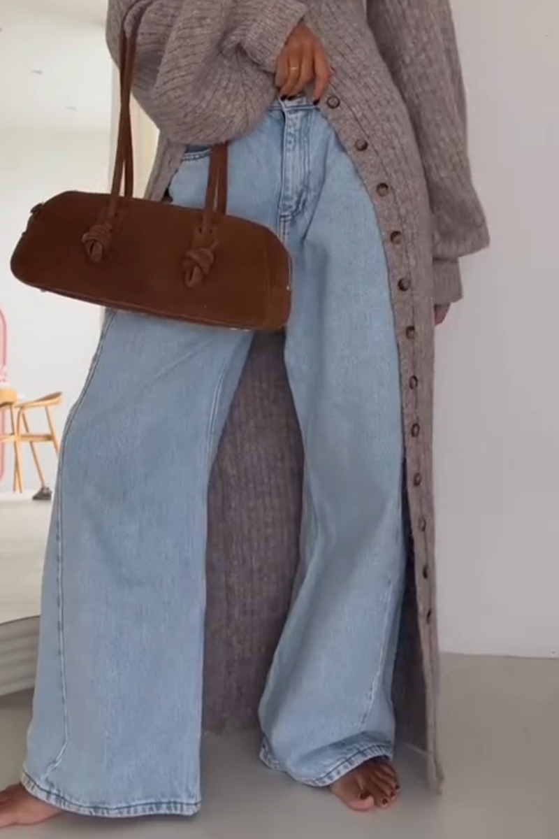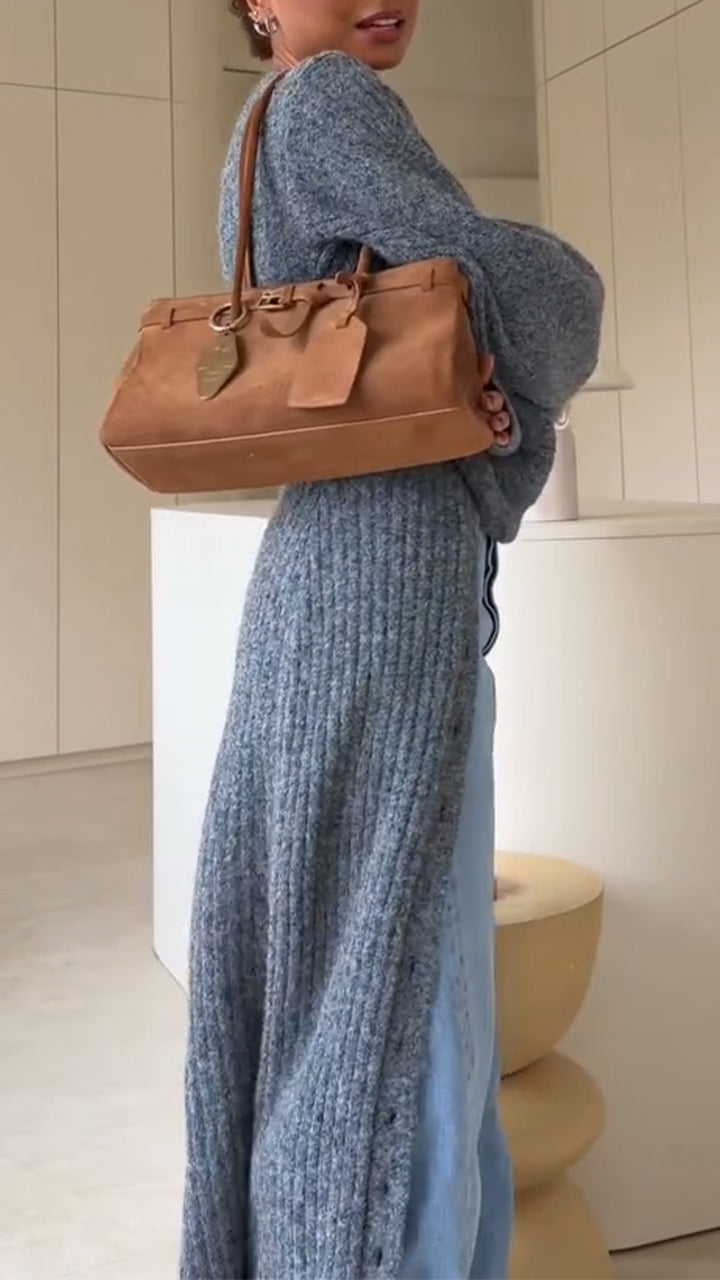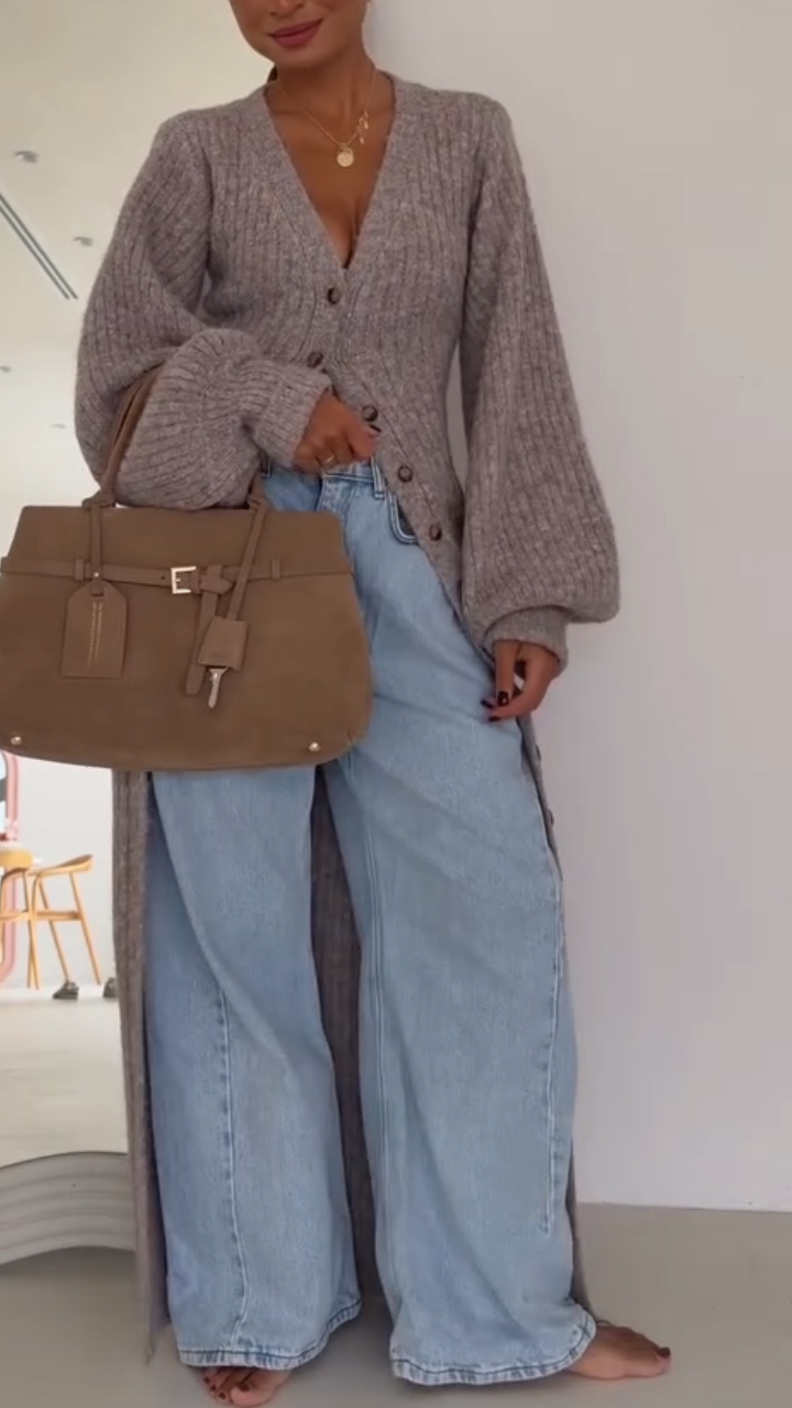 Women Knitted Long Cardigan+ Jeans Casual Suit
