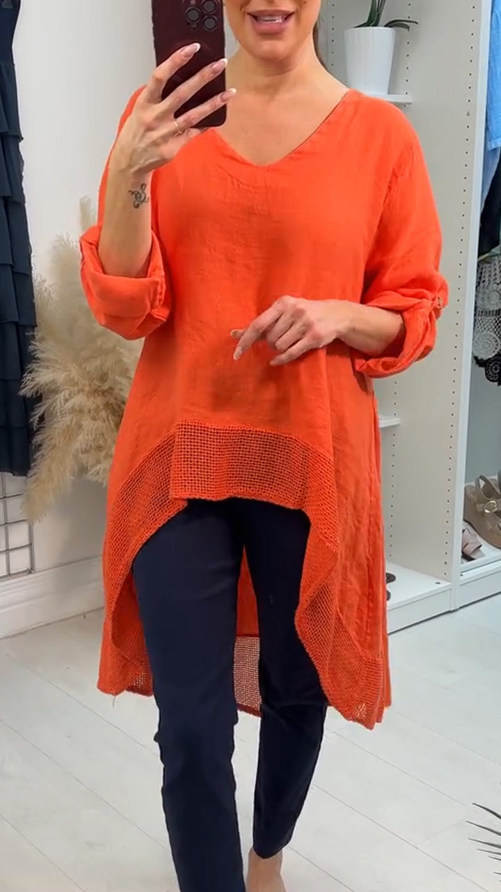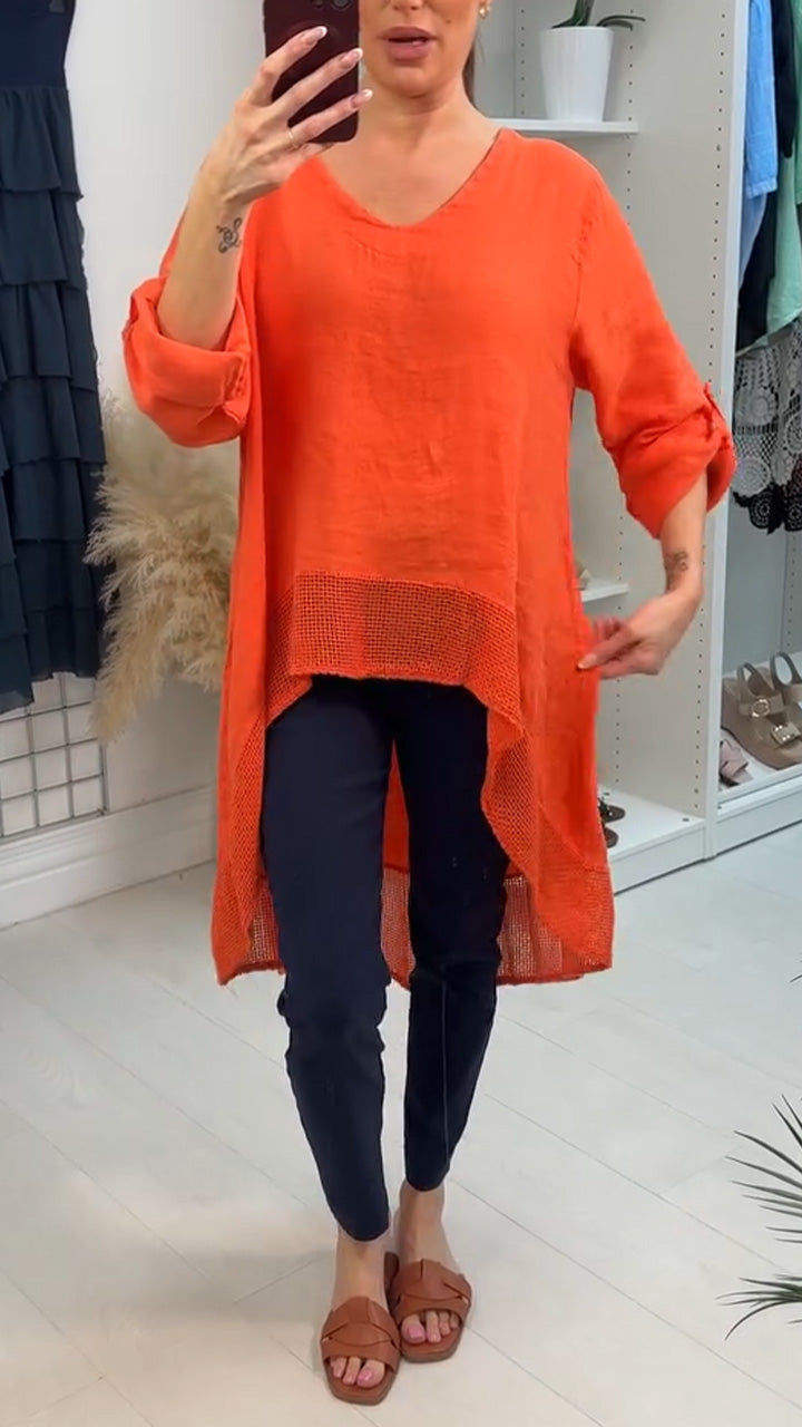Women V-neck Solid Color Irregular Splicing Casual Top