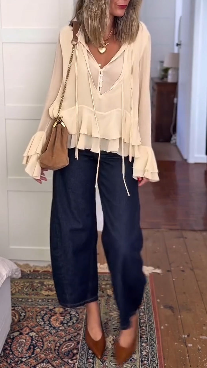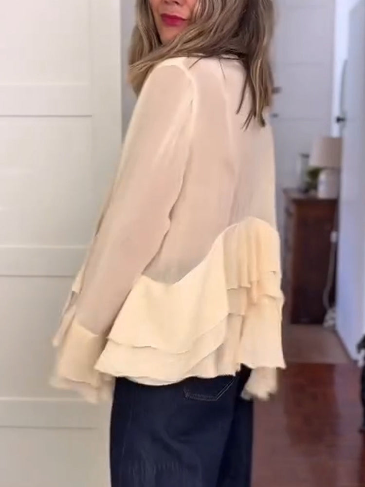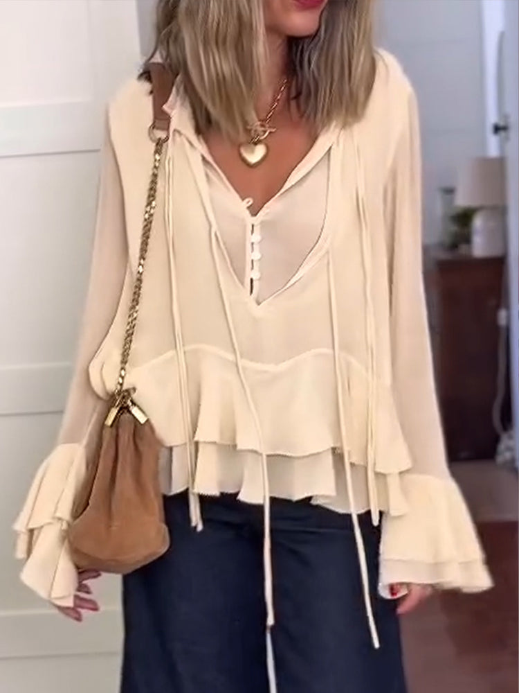 Women V-neck Spliced casual Top