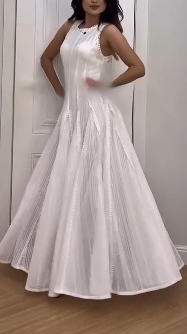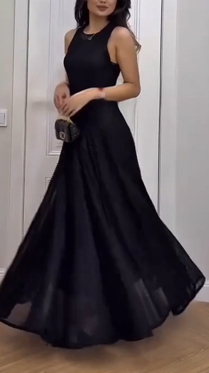Women Round Neck Sleeveless Solid Color Elegant Casual Dress