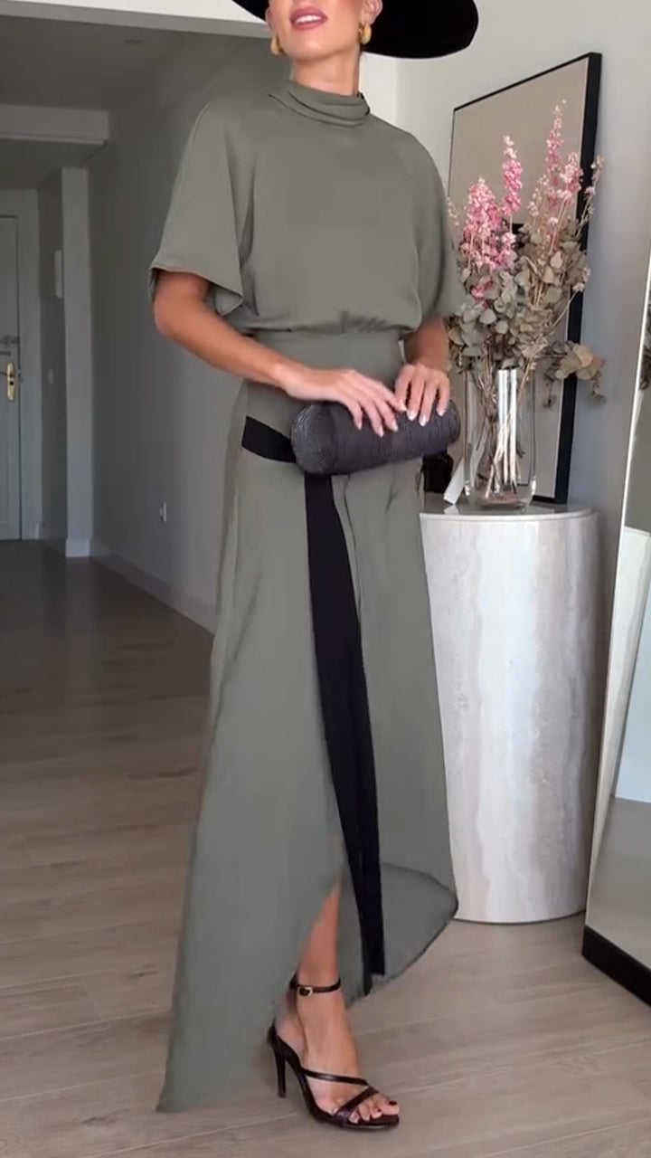 Women Round Neck Splicing Irregular Elegant Casual Dress