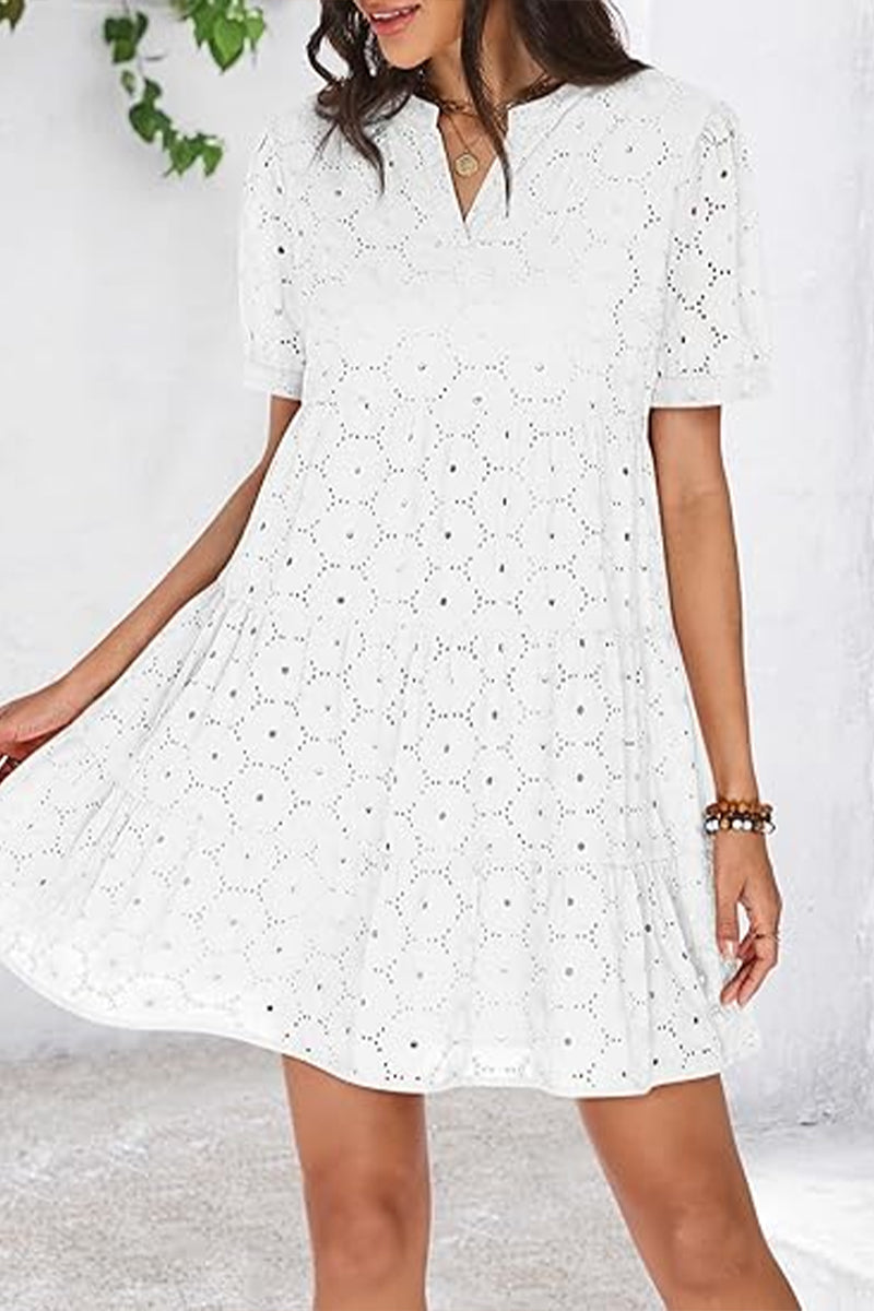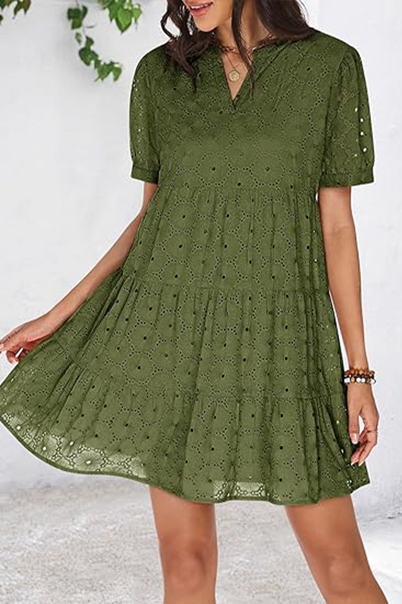Women V-neck Pattern Hollowed Out Elegant Casual Dress