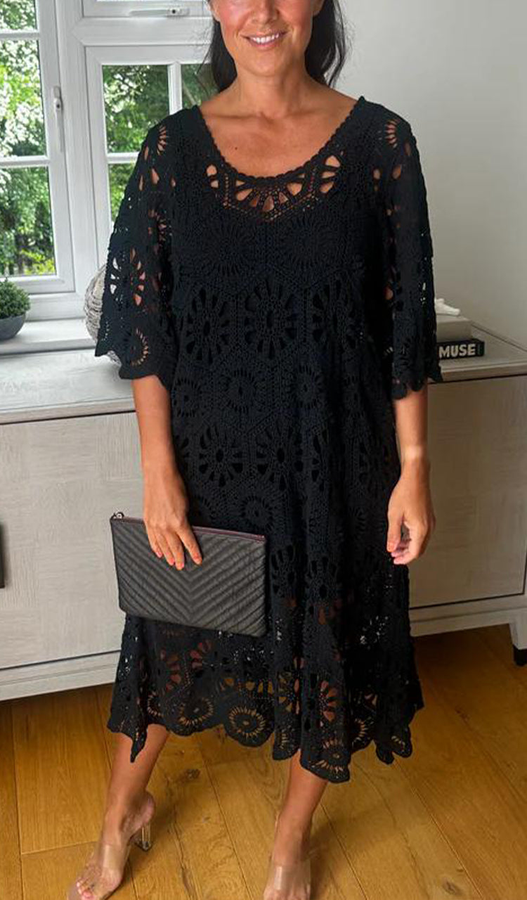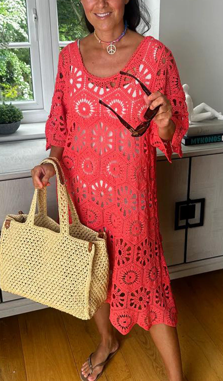 Womens Round Neck Crochet Hollow Out Casual Dress