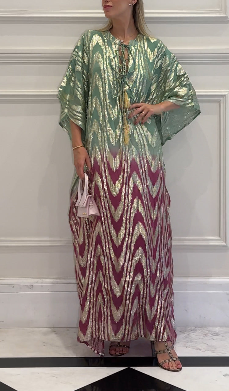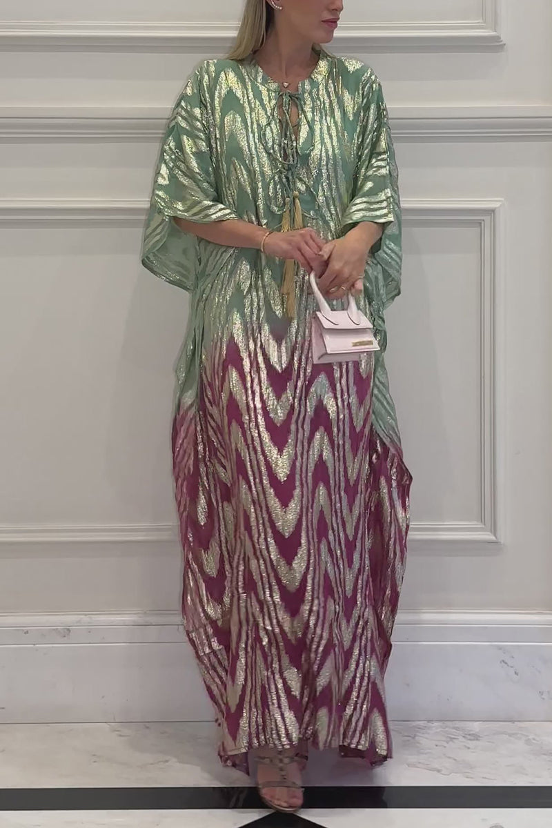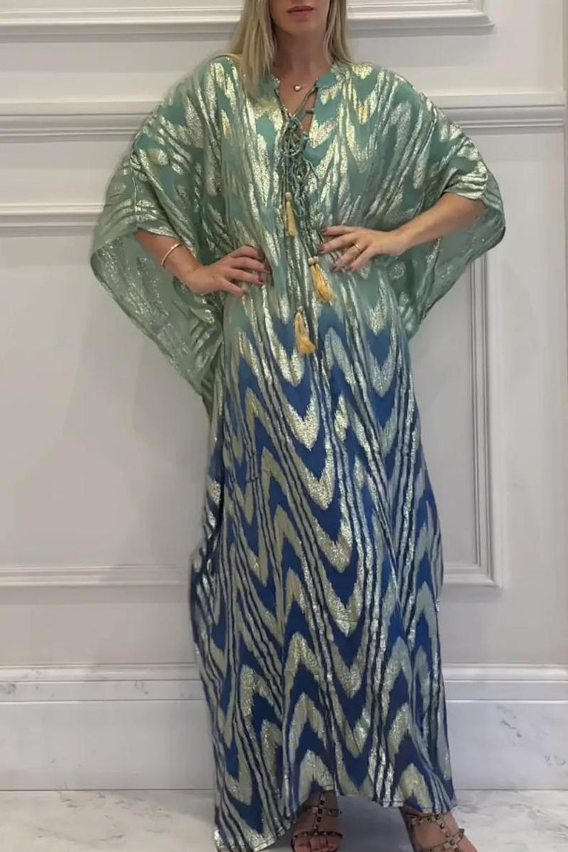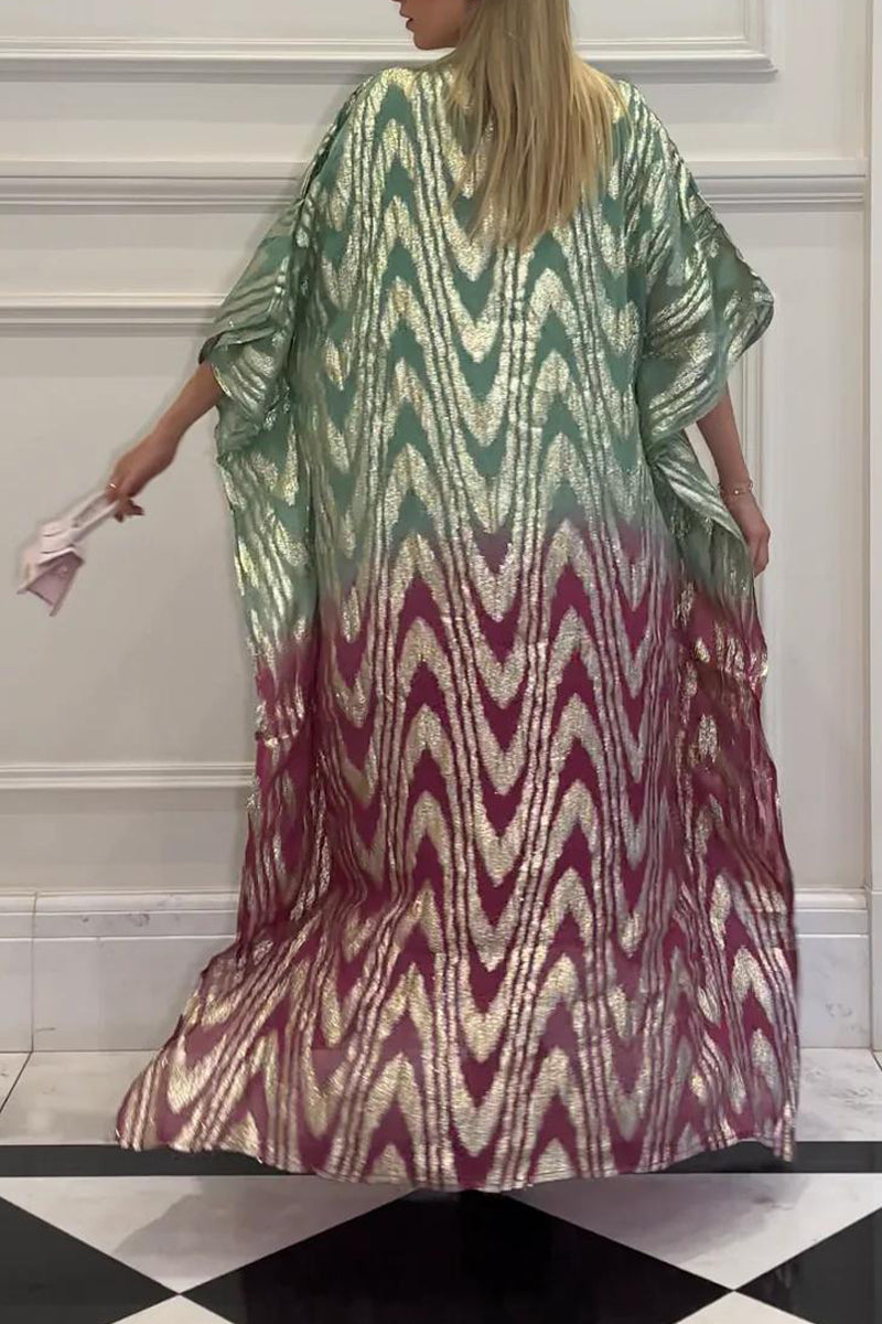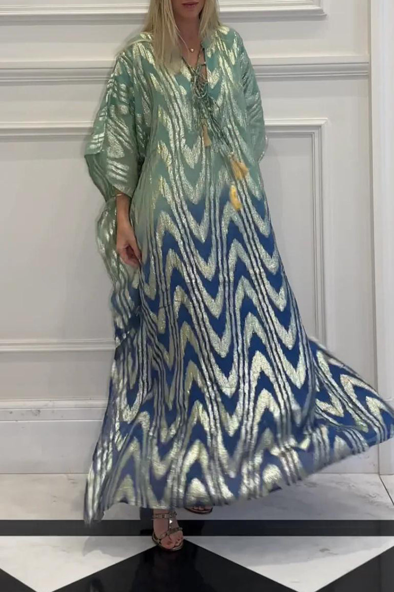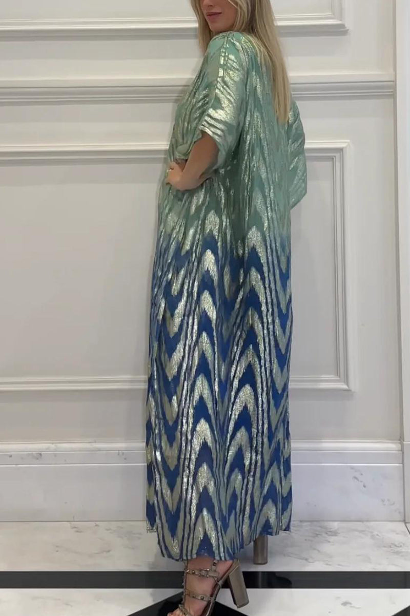 Womens Round Neck Gold-trimmed Gradient Elegant Dress
