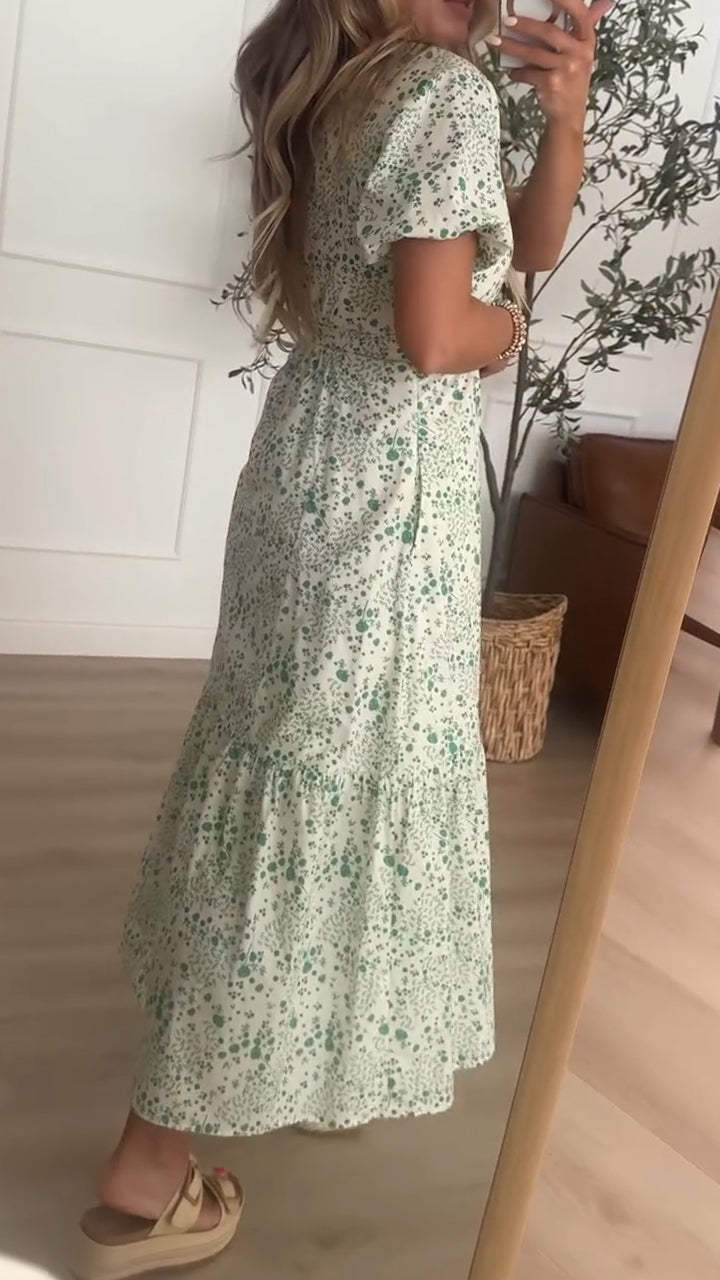 Womens V-neck Elegant Casual Floral Dress