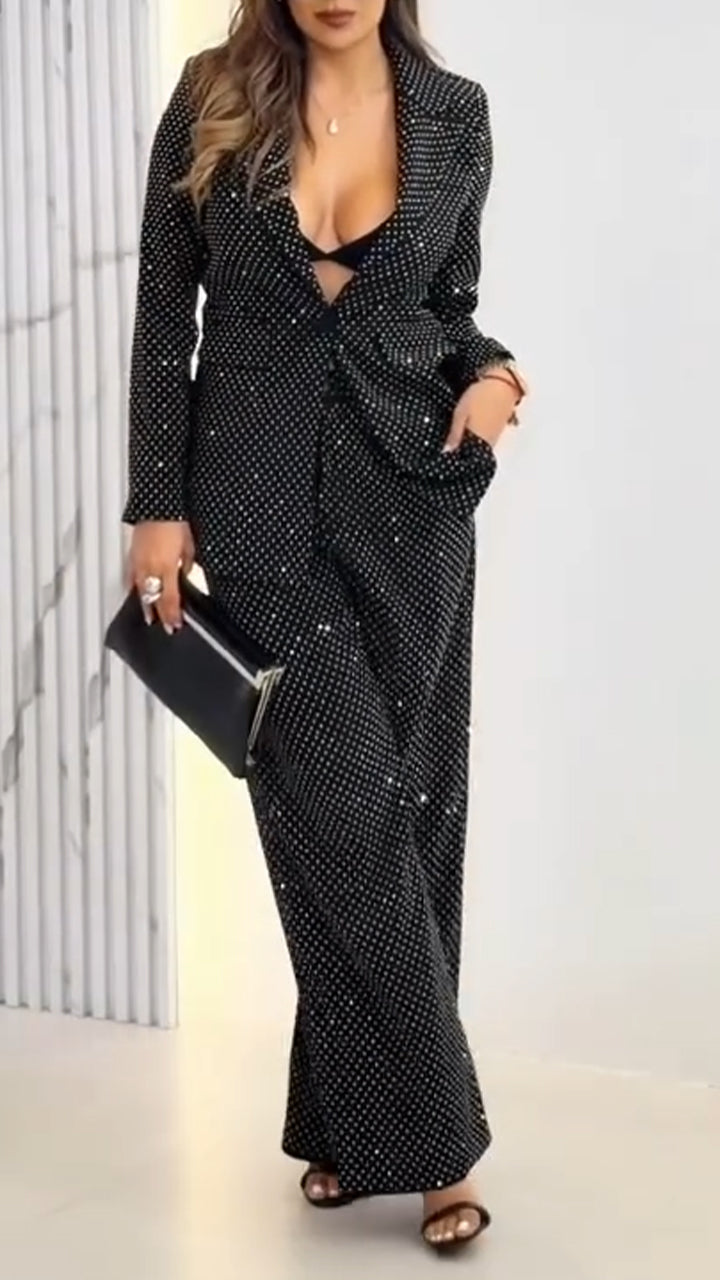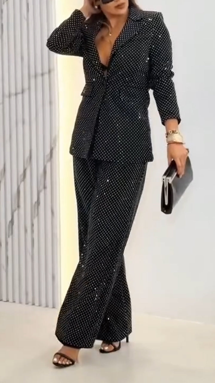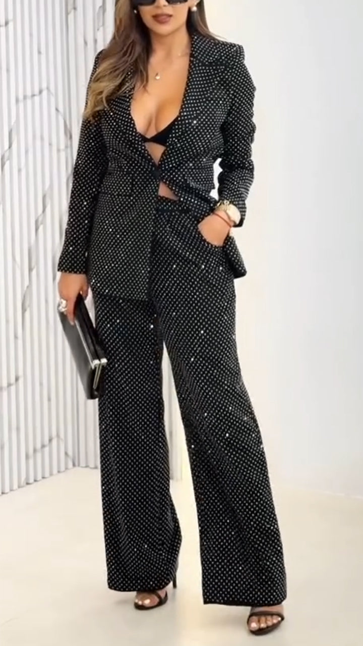 Women Laple Collar Hot Diamond Sparkling Temperament Commuter Set