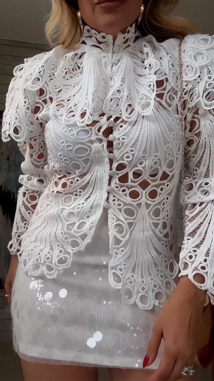 Women Round Neck Hollowed Out Top+ Half Skirt Elegant Casual Set