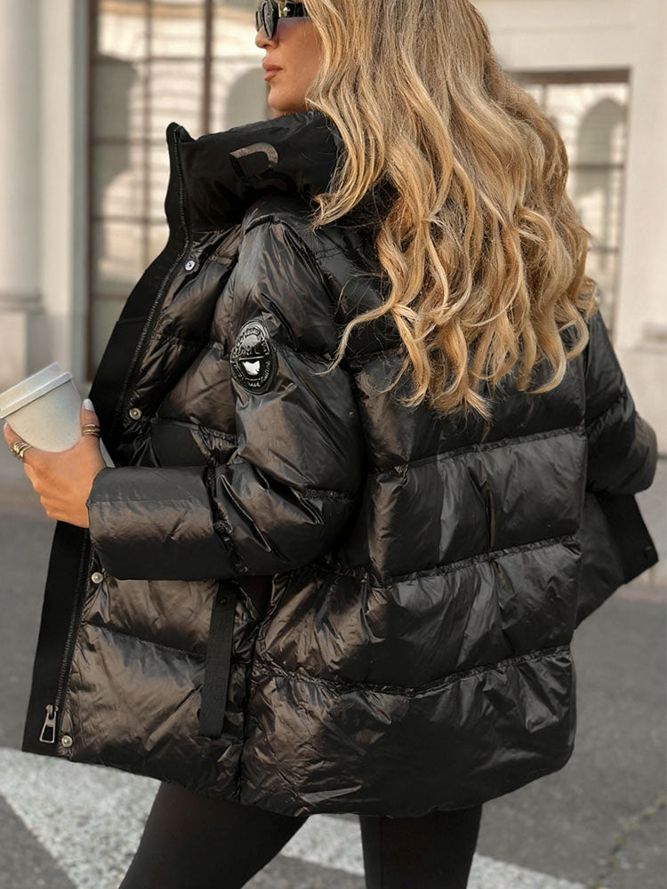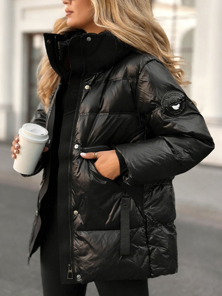 Women Standing Collar Buttoned Casual Cotton Jacket