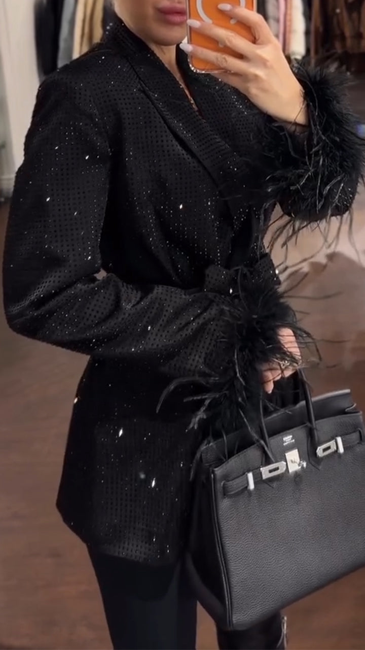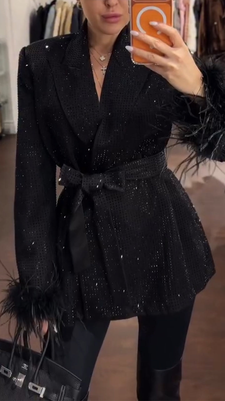 Ladies Collar Hot Stamping Cuff Strip Design Temperament Casual Jacket