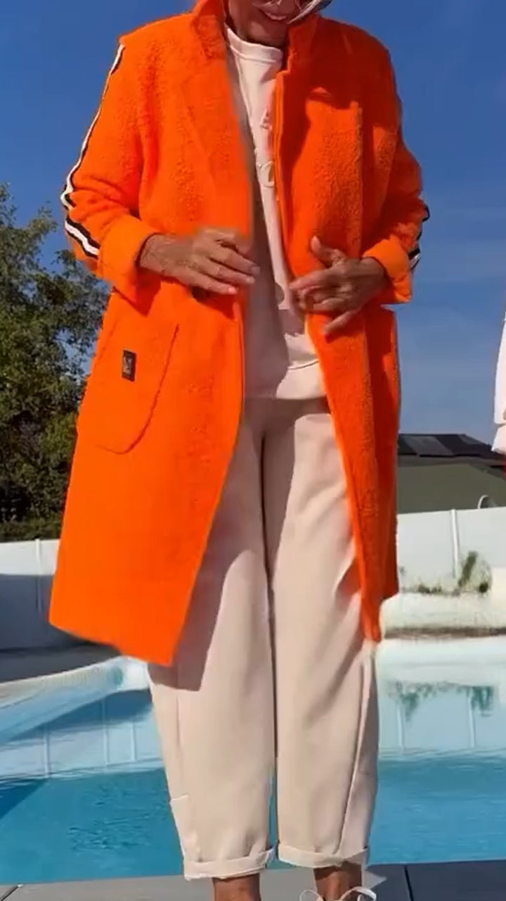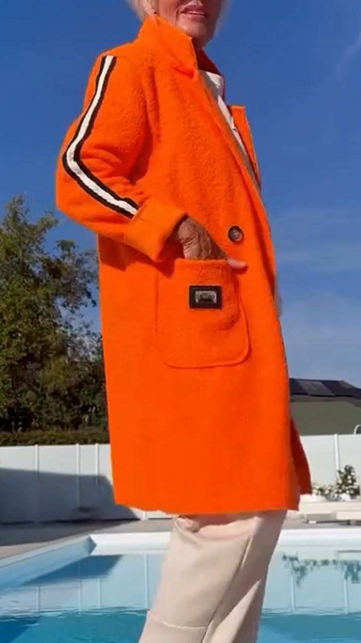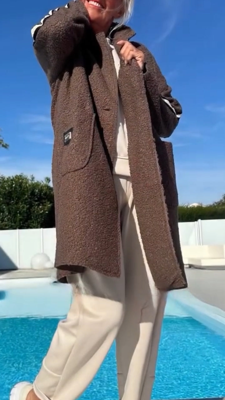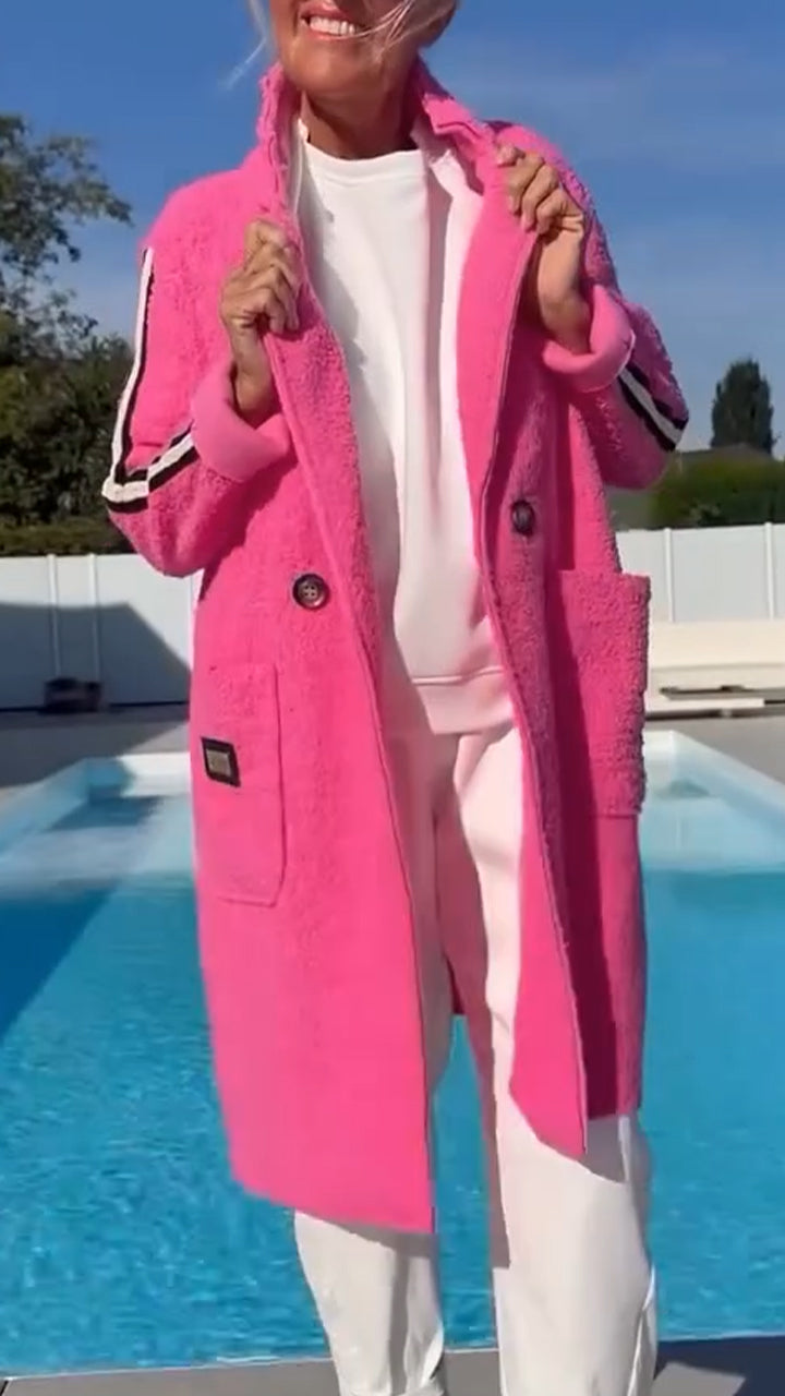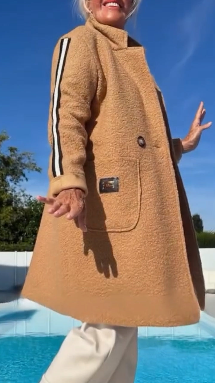 Ladies Stand Collar Vertical Stripe Casual Plush Jacket
