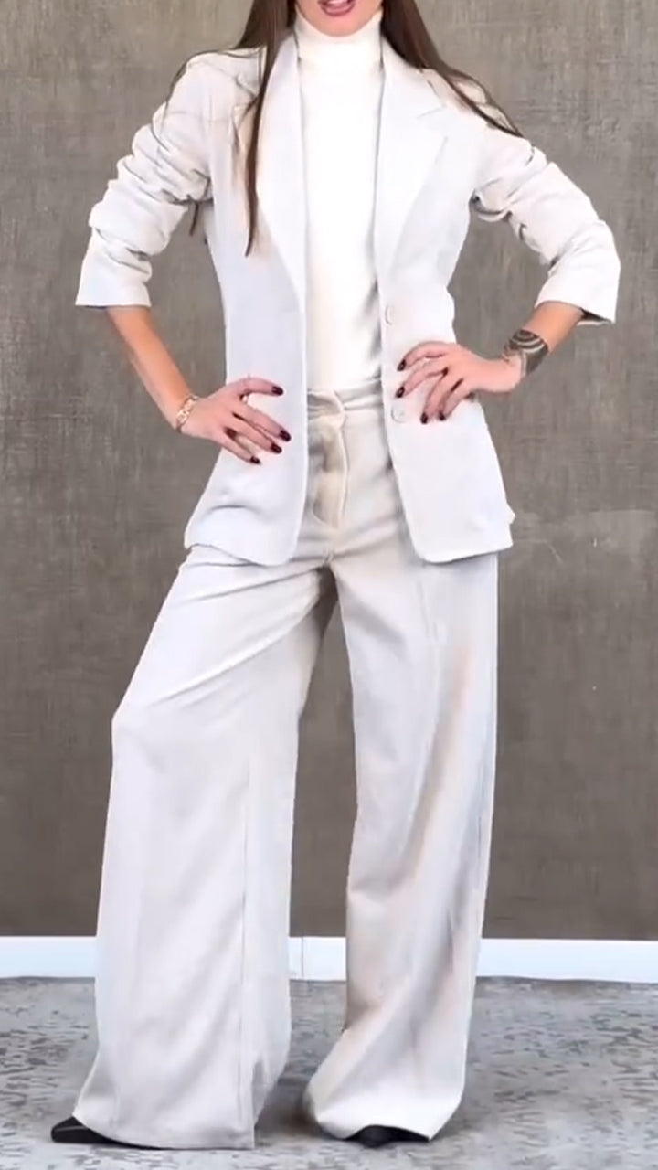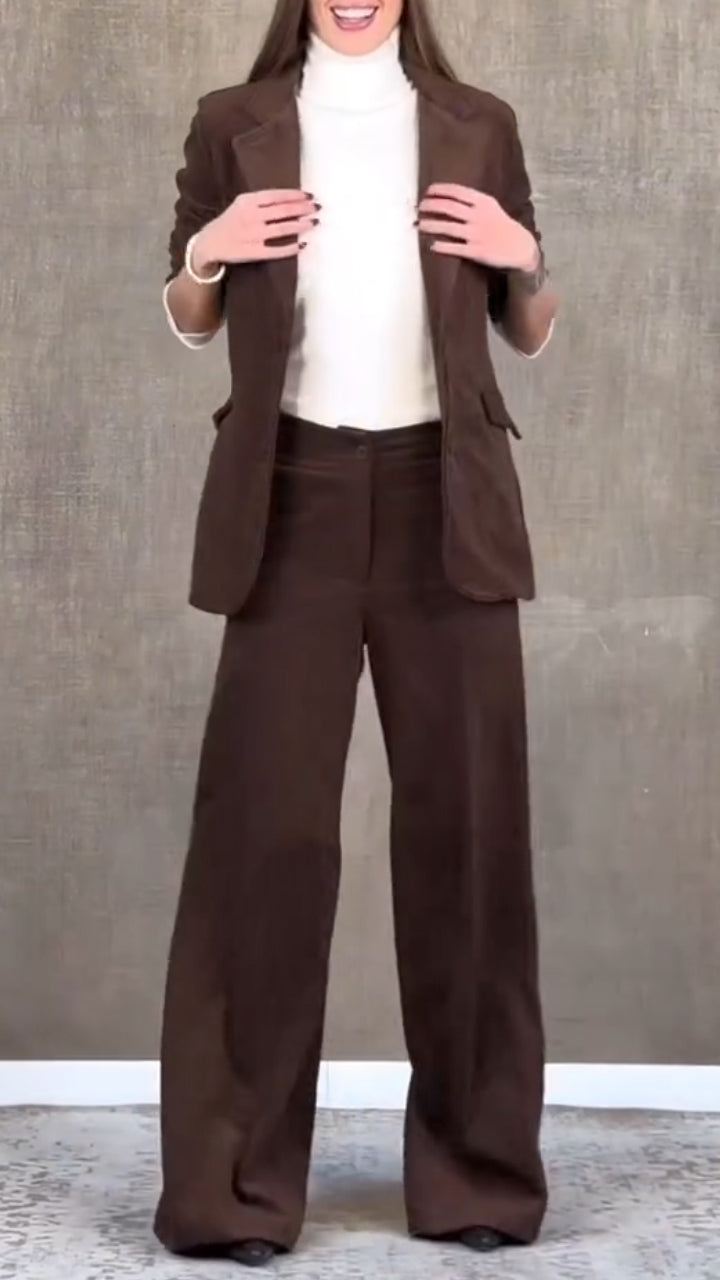Women Collar Jacket+ Pants Solid Color Temperament Commuting Suit