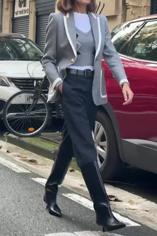 Women Interior Patchwork Dress+ Side Zipper Top Casual Set