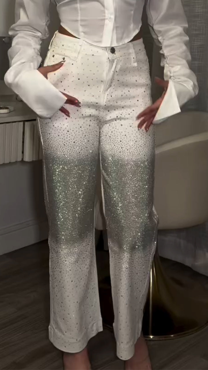 Ladies V-neck Waist Strap Sequins Fine Glitter Temperament Casual Dress