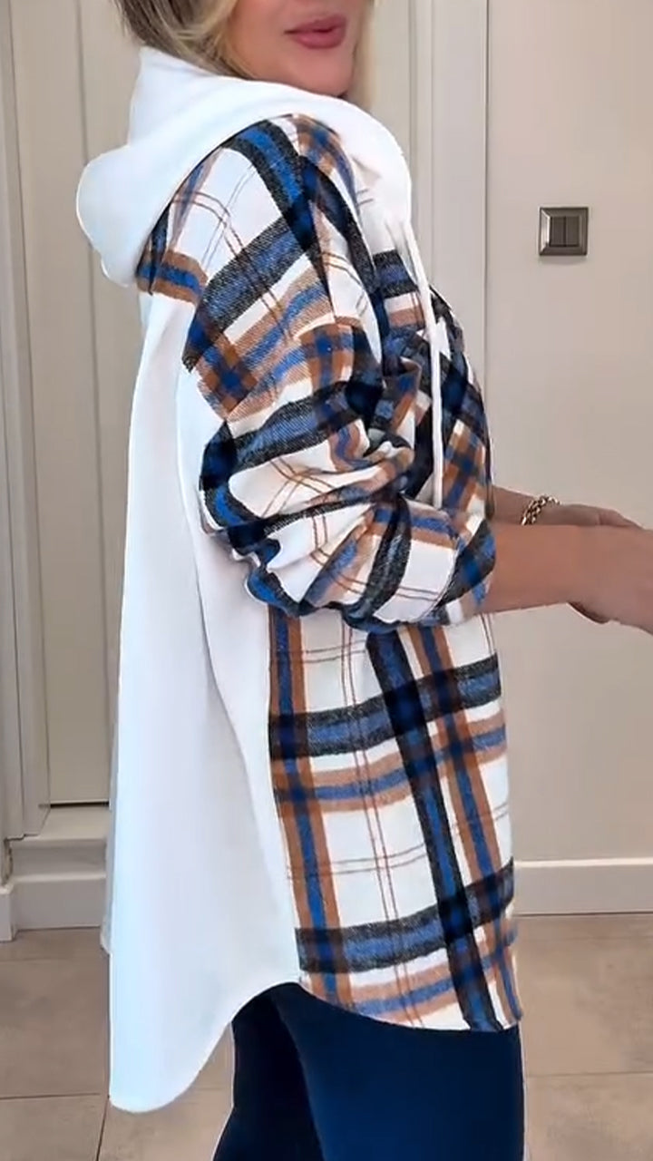 Women Hooded Vertical Striped Reversible Casual Plush Coat