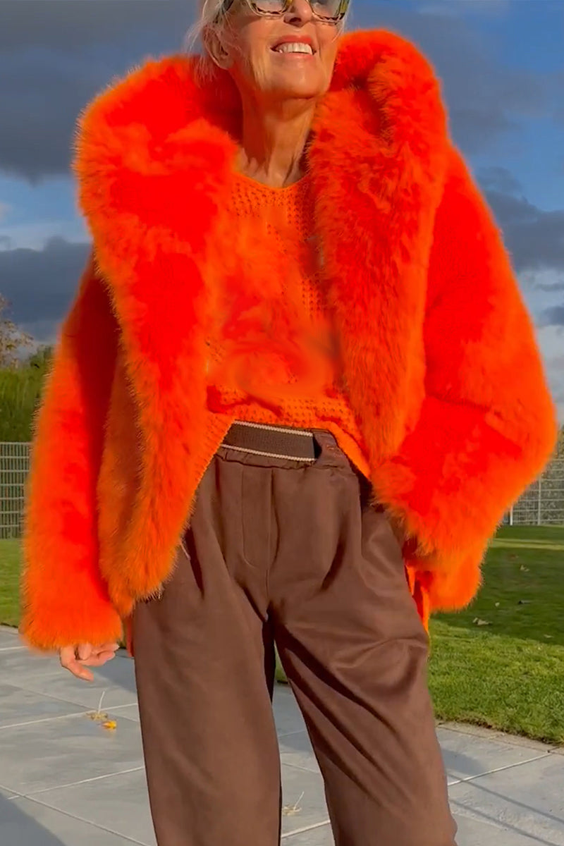 Women Hooded Vertical Striped Reversible Casual Plush Coat