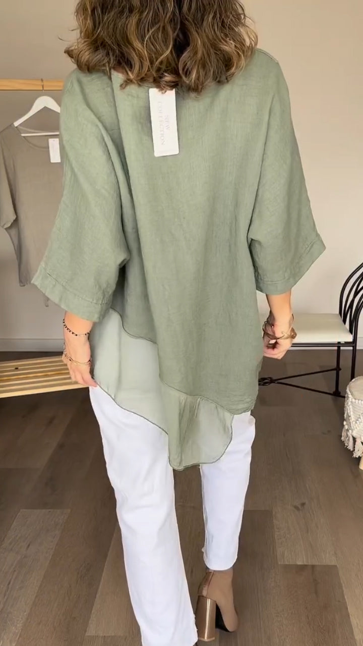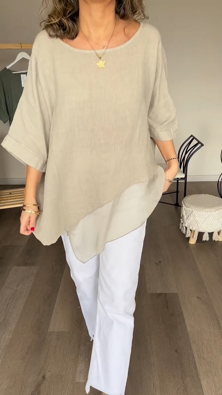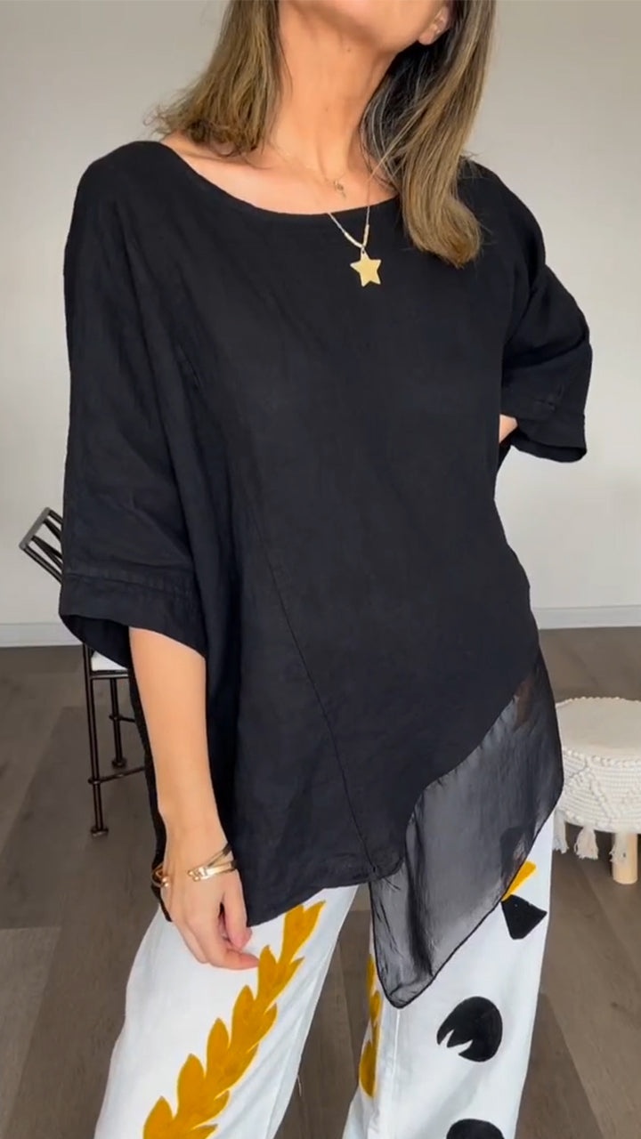 Women Round Neck Patchwork Casual Top