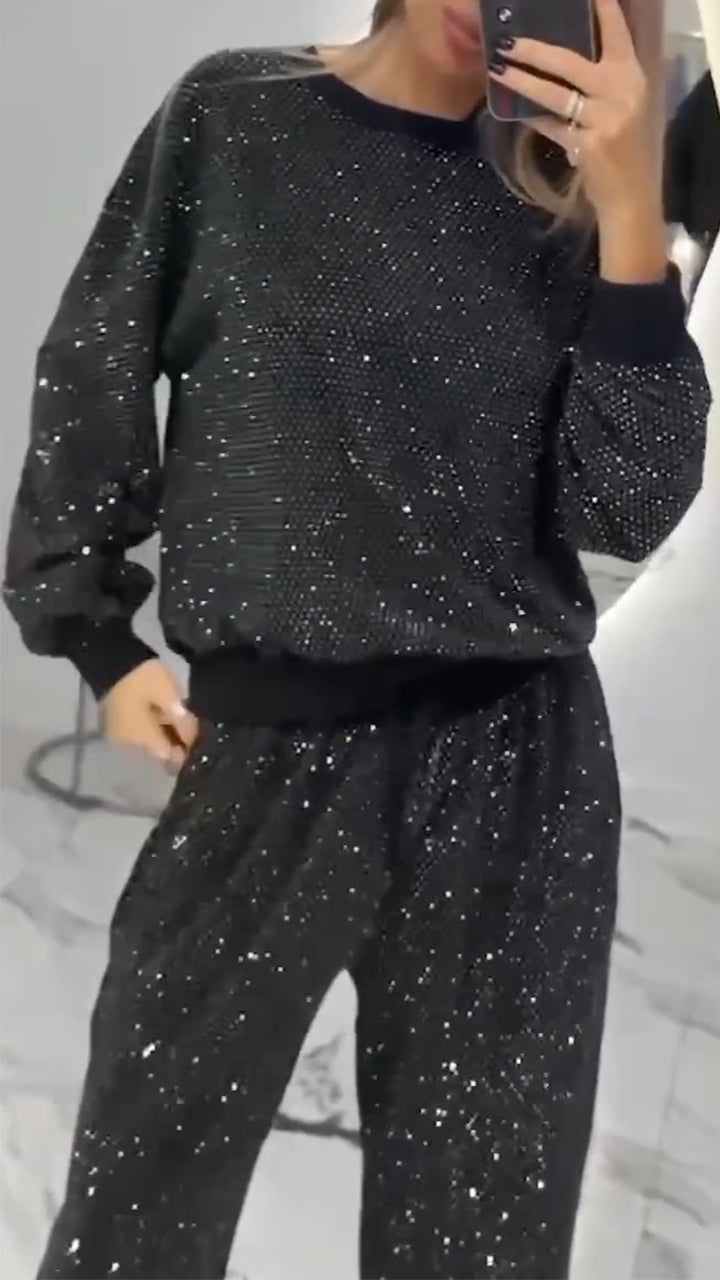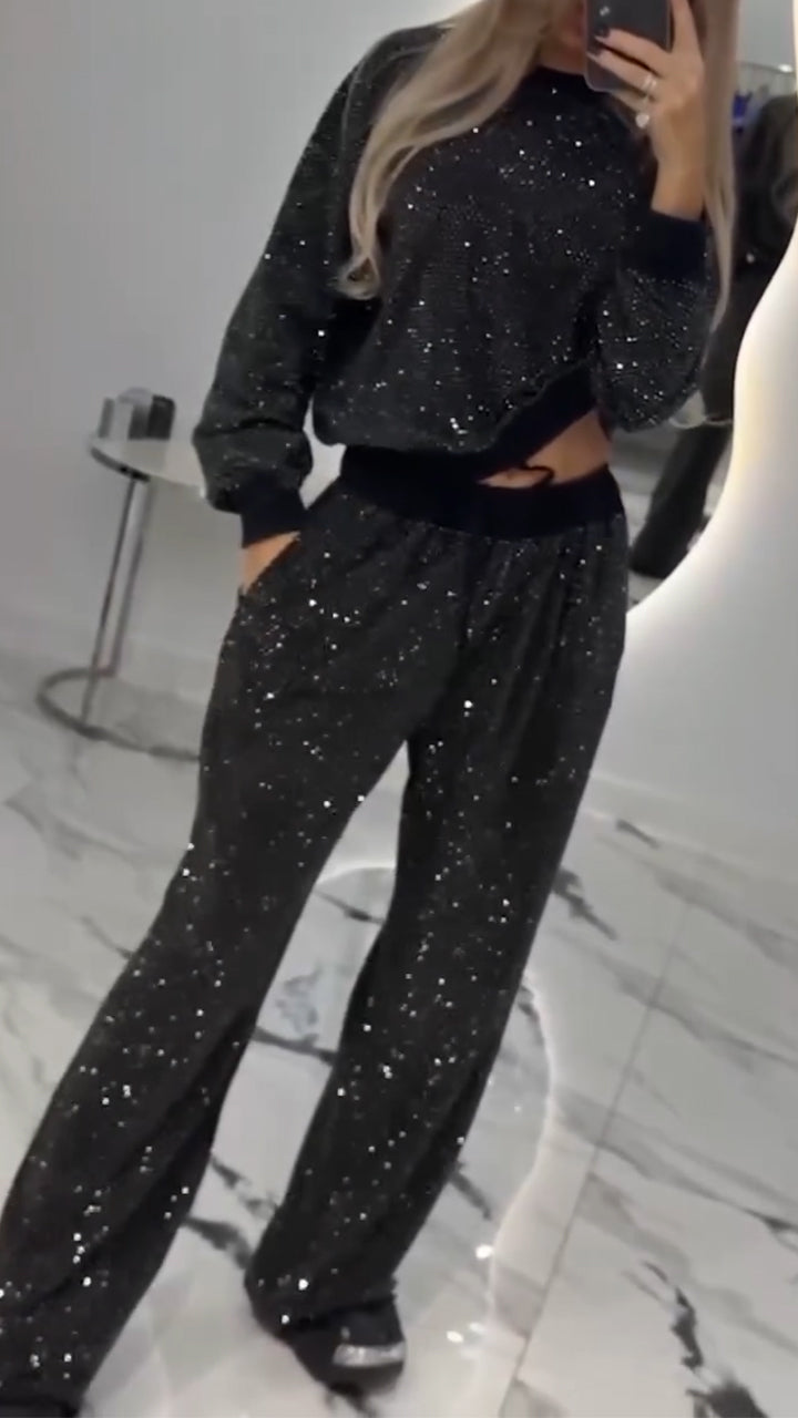 Women Collar Hollow Lace Pattern Top+ Pants Casual Suit