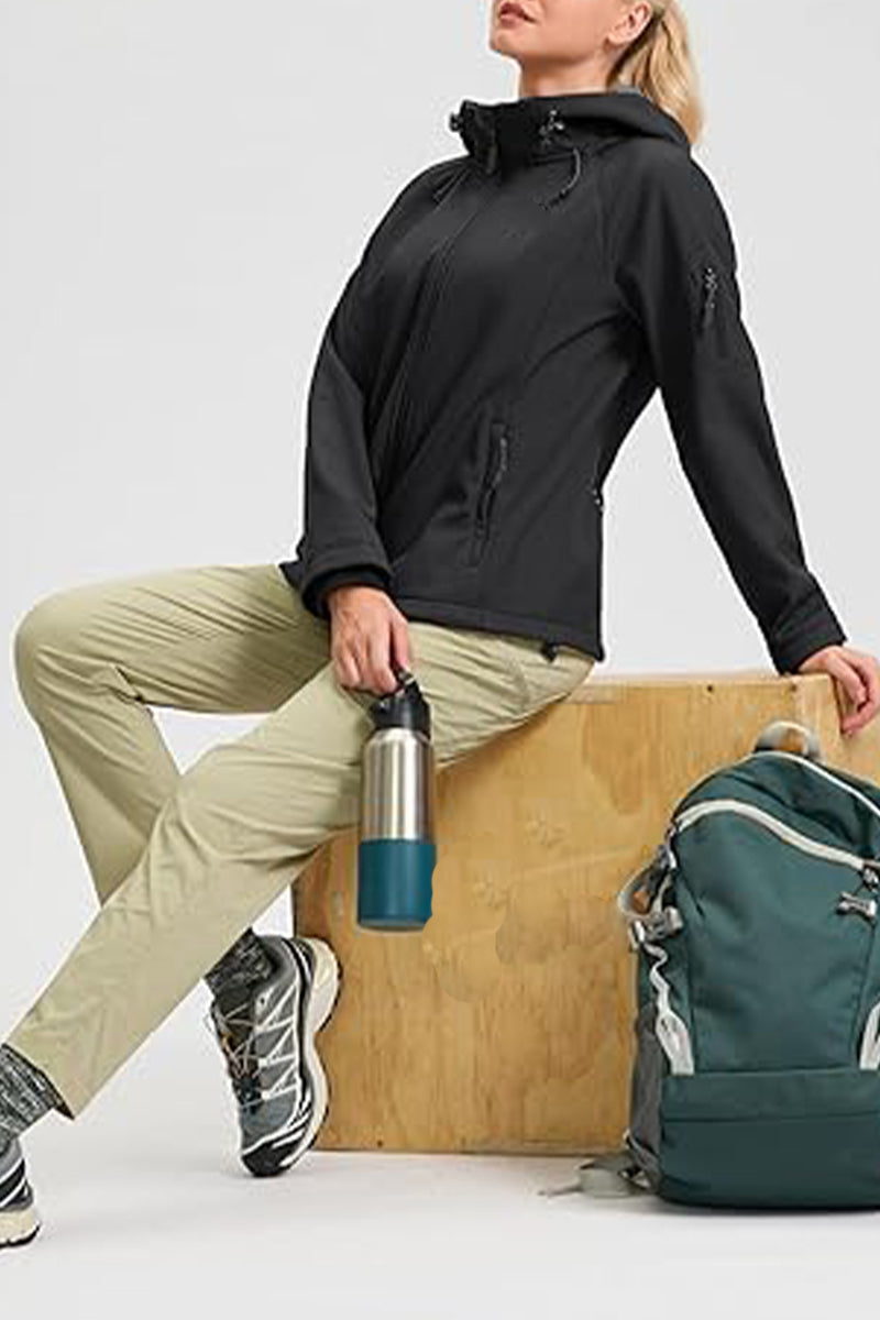 Women Wool Lined Soft Shell Waterproof Hooded Jacket