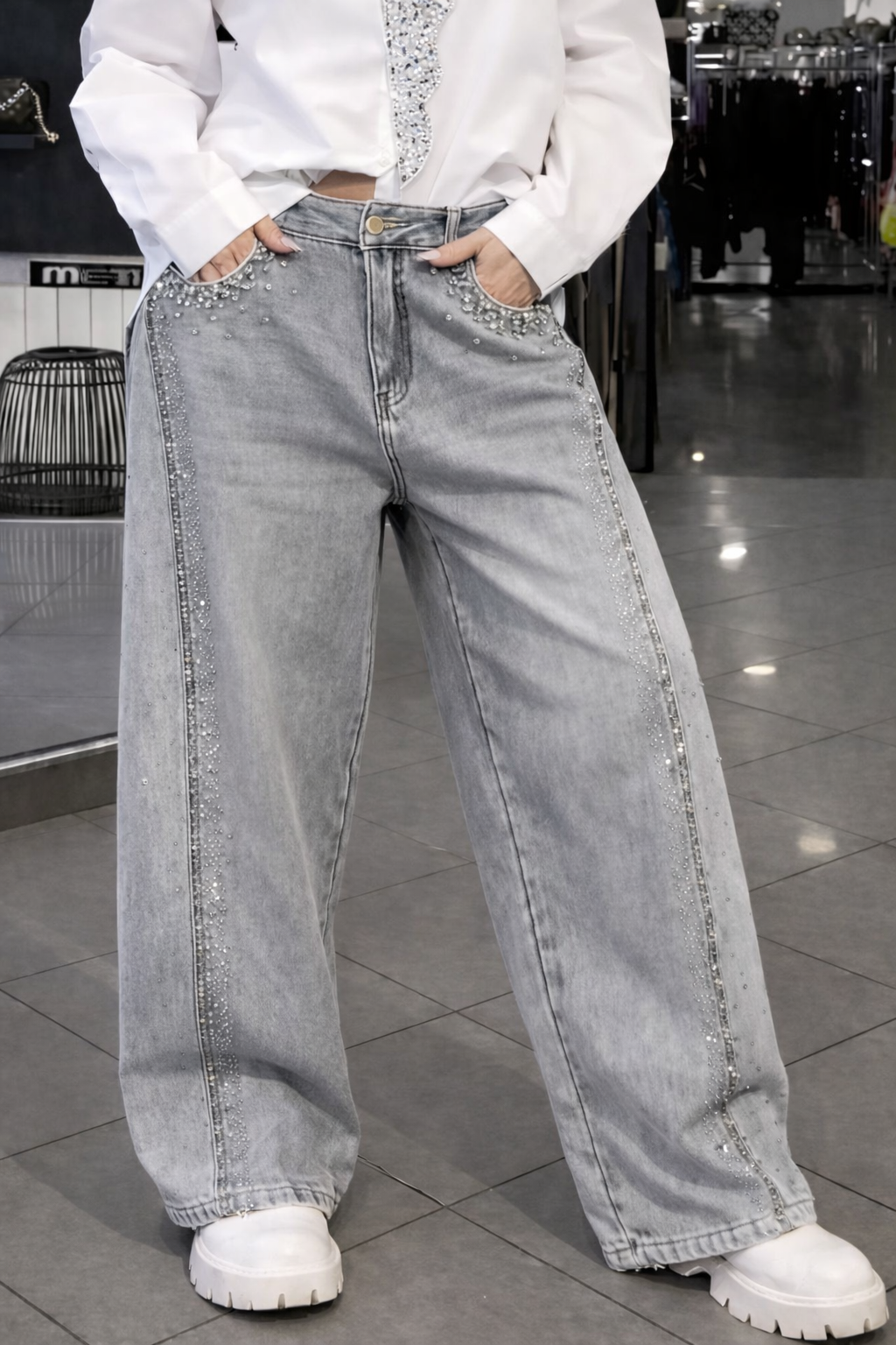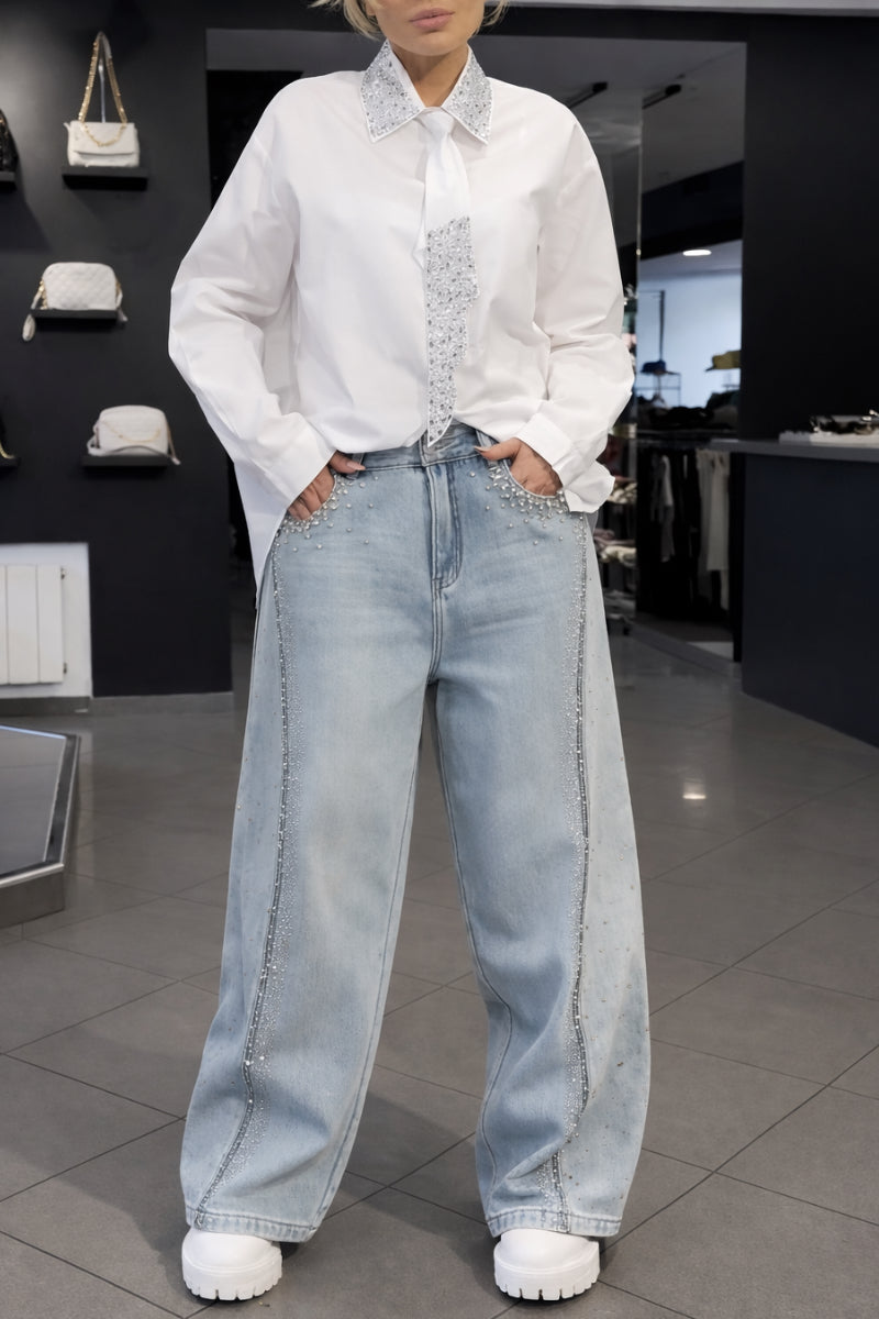 Women's Tie Shirt + Jeans Rhinestone Suit