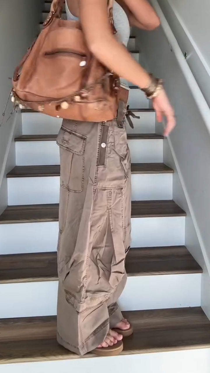 Fashion Casual Women's Loose Wide-leg Pants Mid-low Waist Washed Denim Trousers