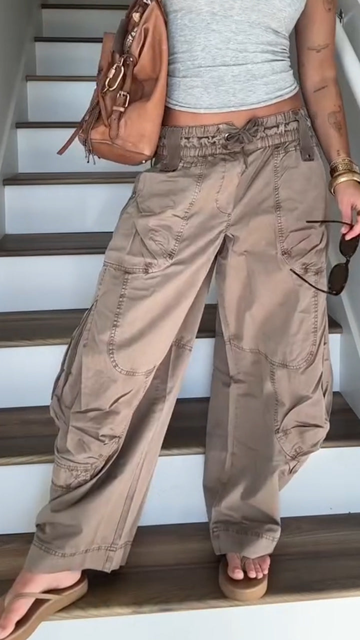 Women Drawstring Spliced Casual Pants