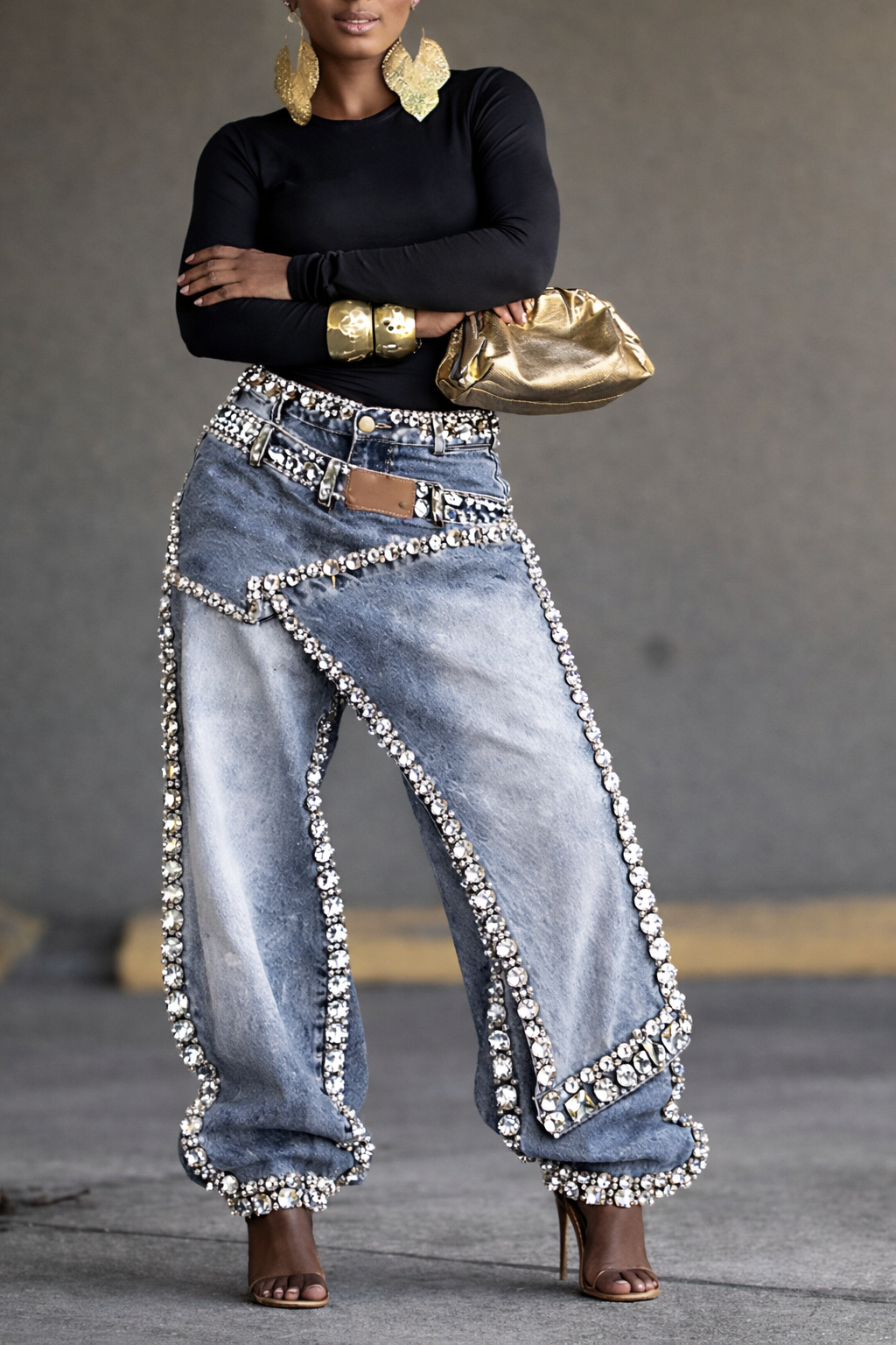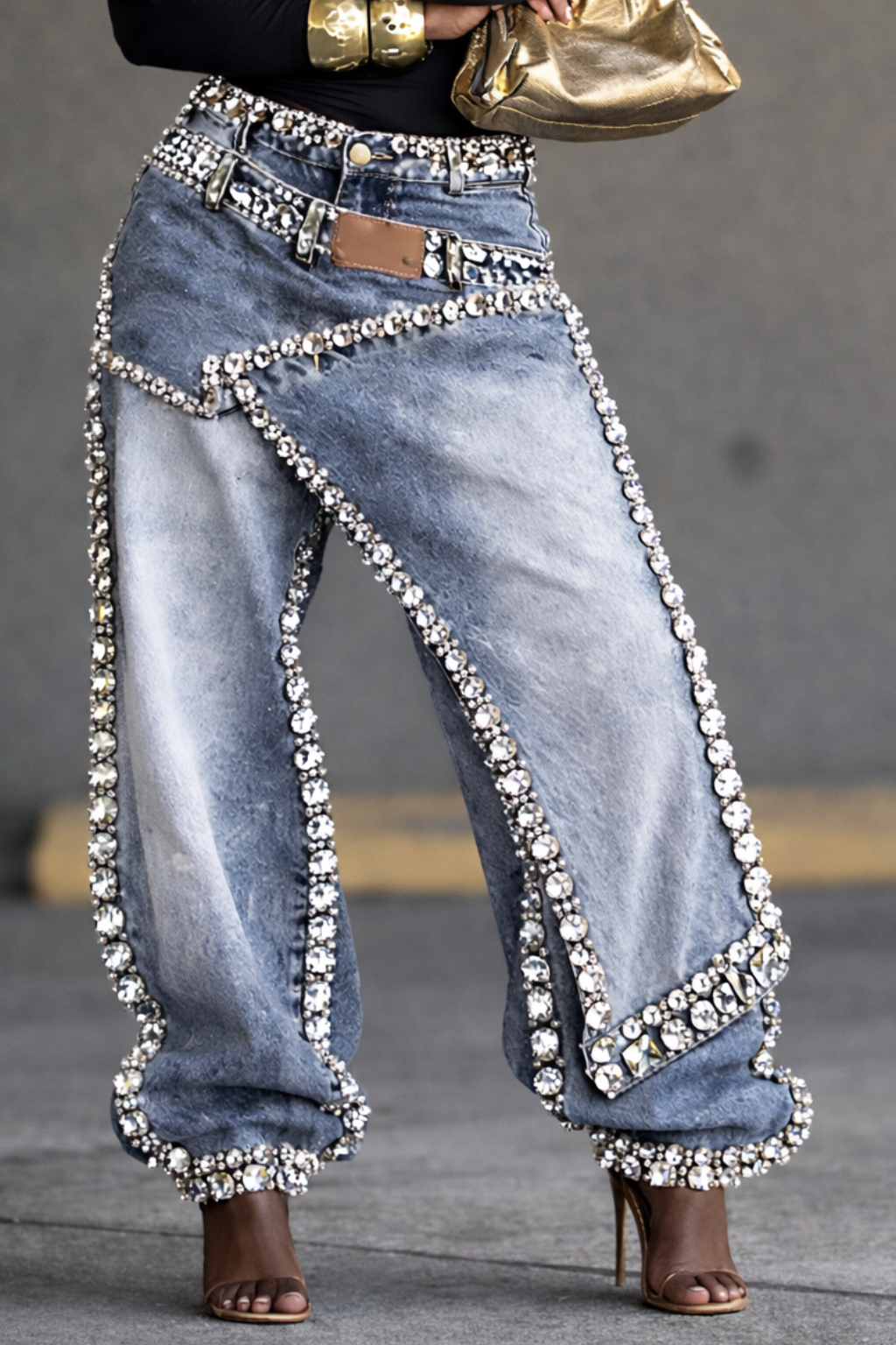 Women's Casual Rhinestone Loose Harem Jeans