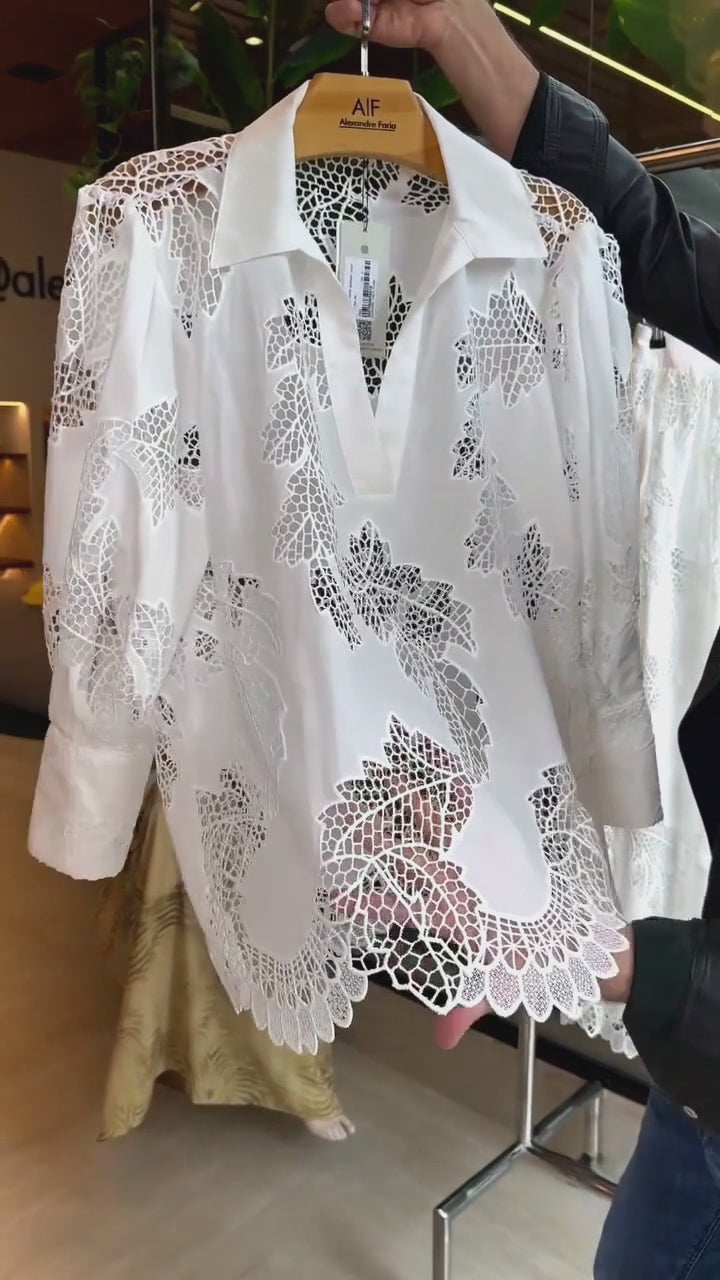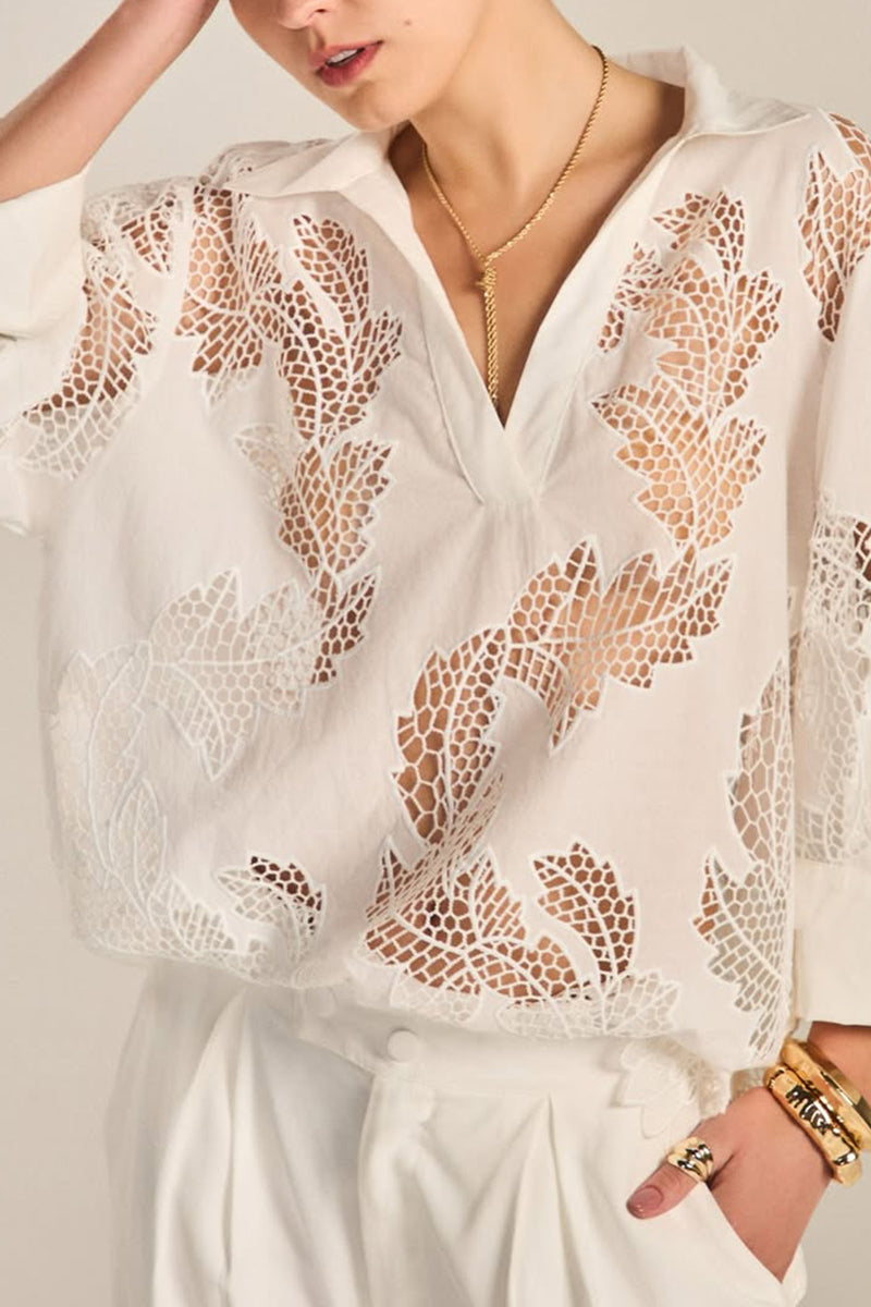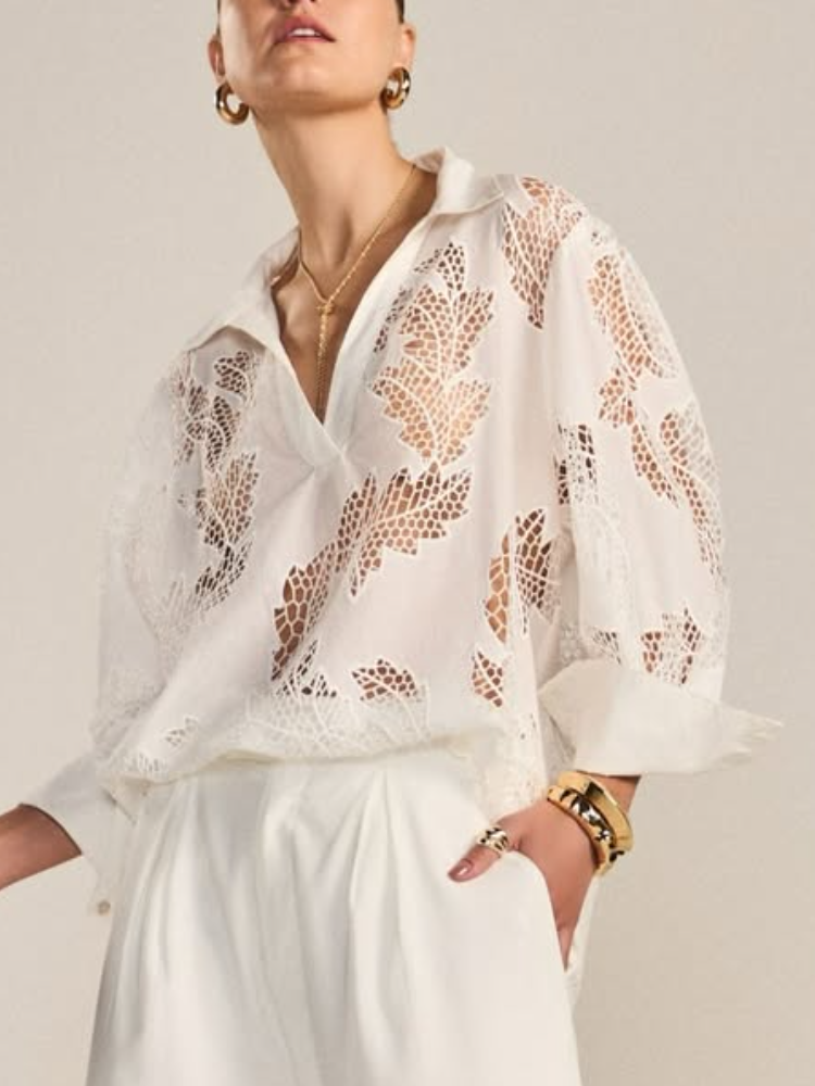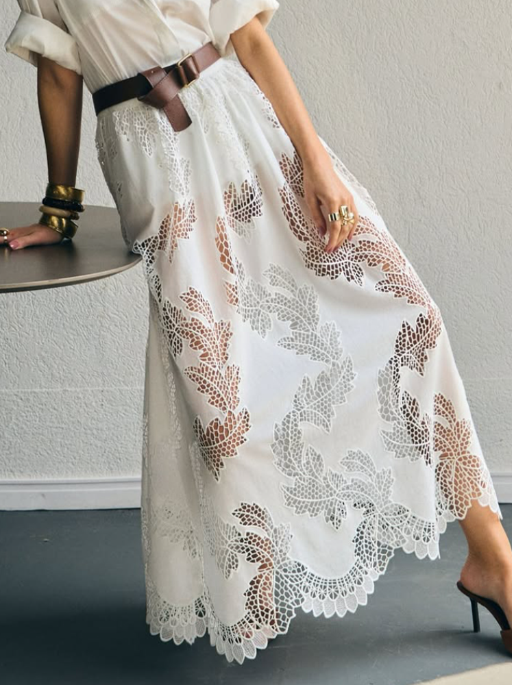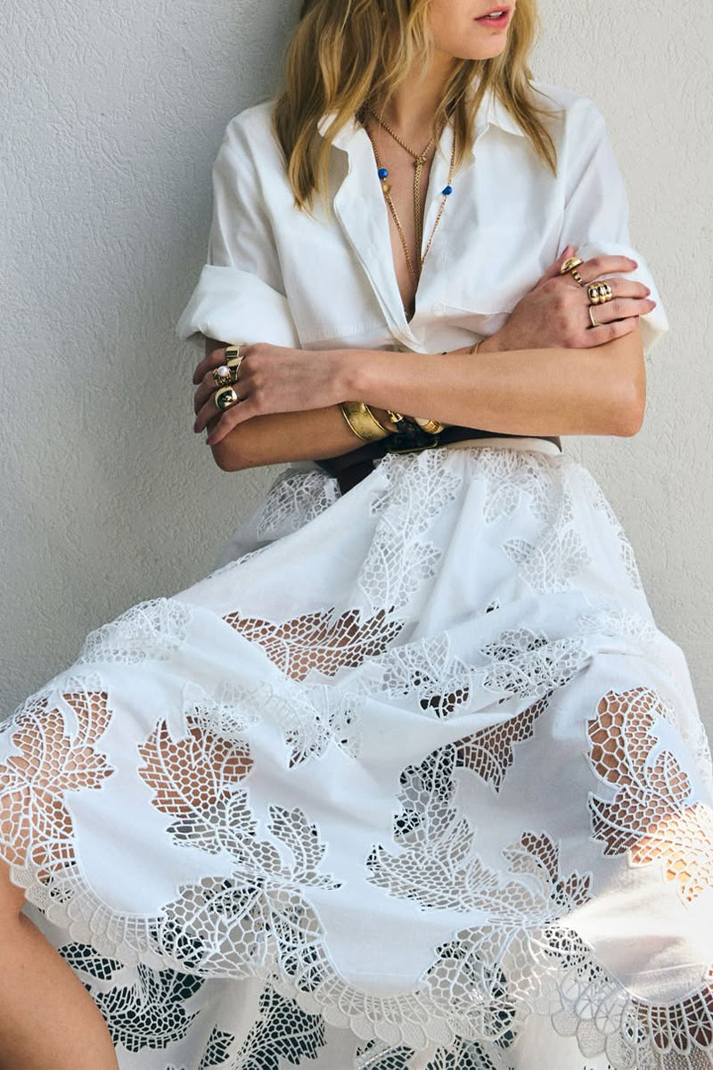 Women Collar Hollow Top + Half Skirt Solid Color Casual Suit