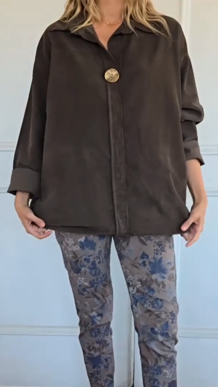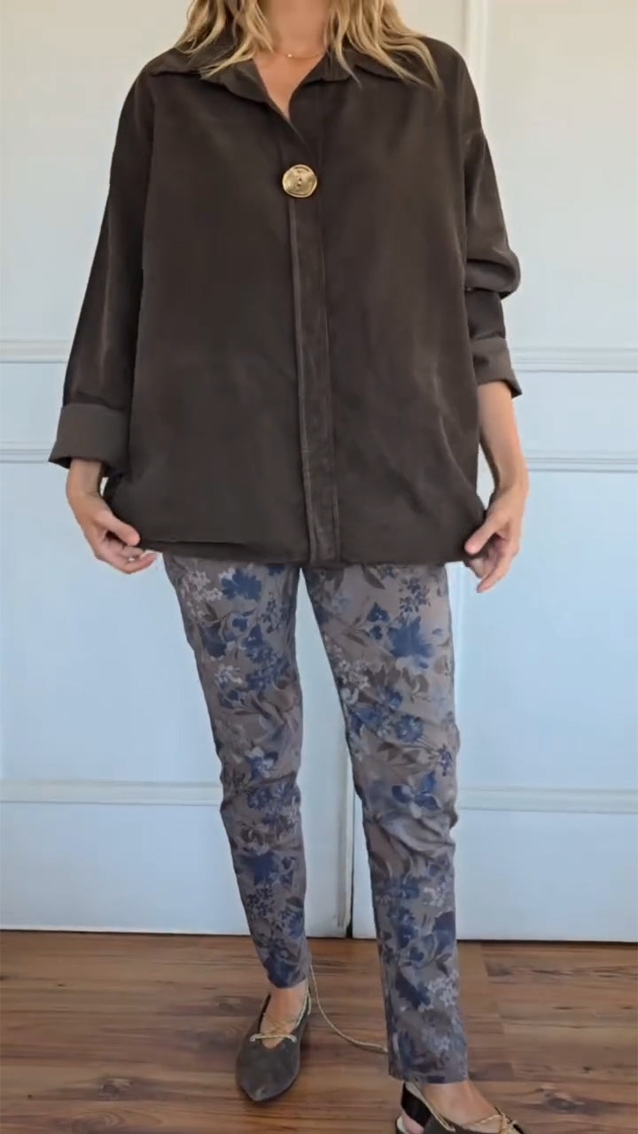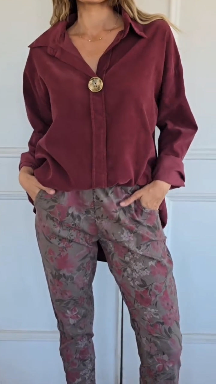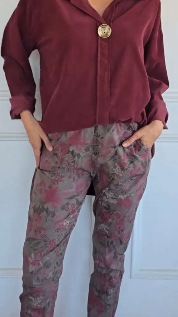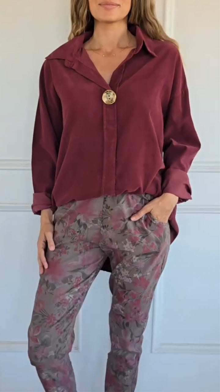 Women Collar Tops + Printed Pants Casual Set