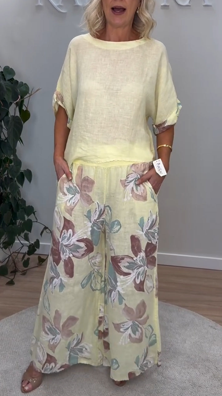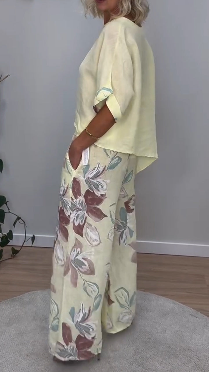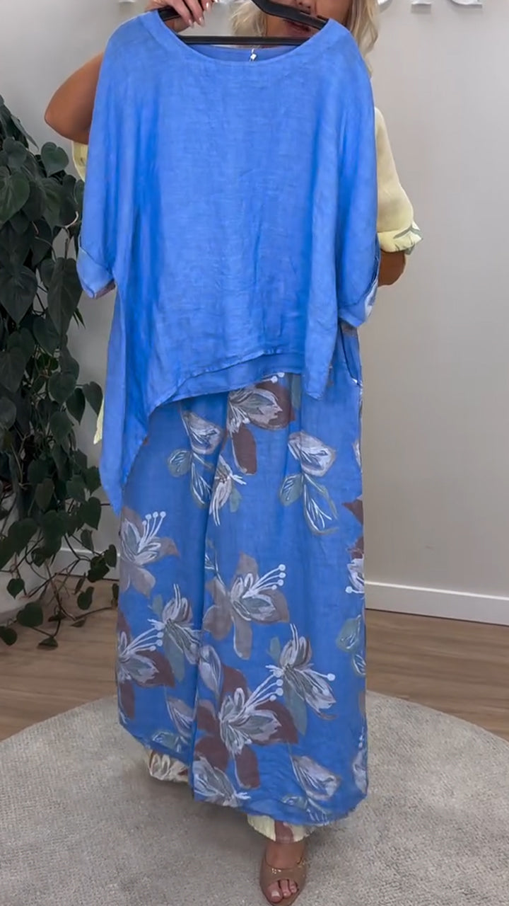 Women's Casual Round-neck Gradient Cotton and Linen Two-piece Suit