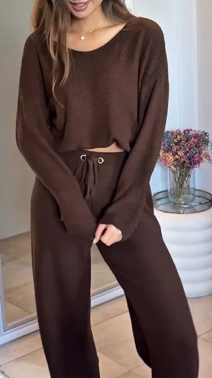 Women Round Neck Solid Color Casual Suit